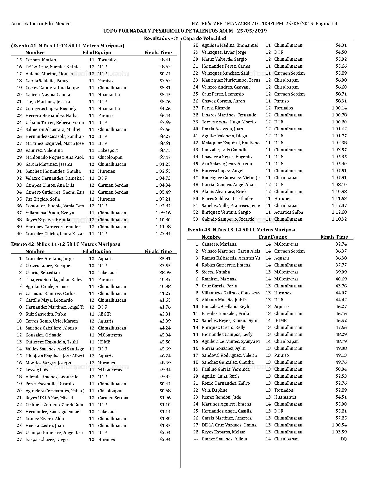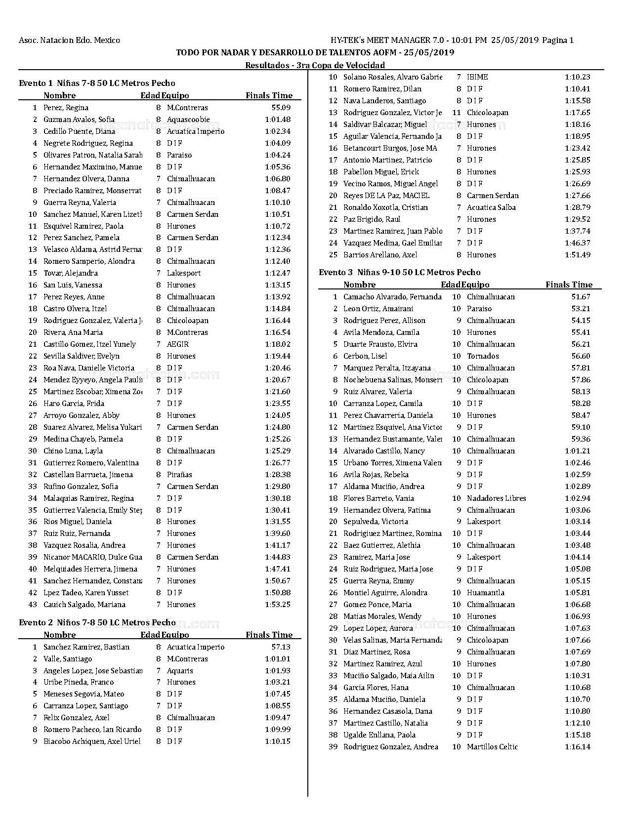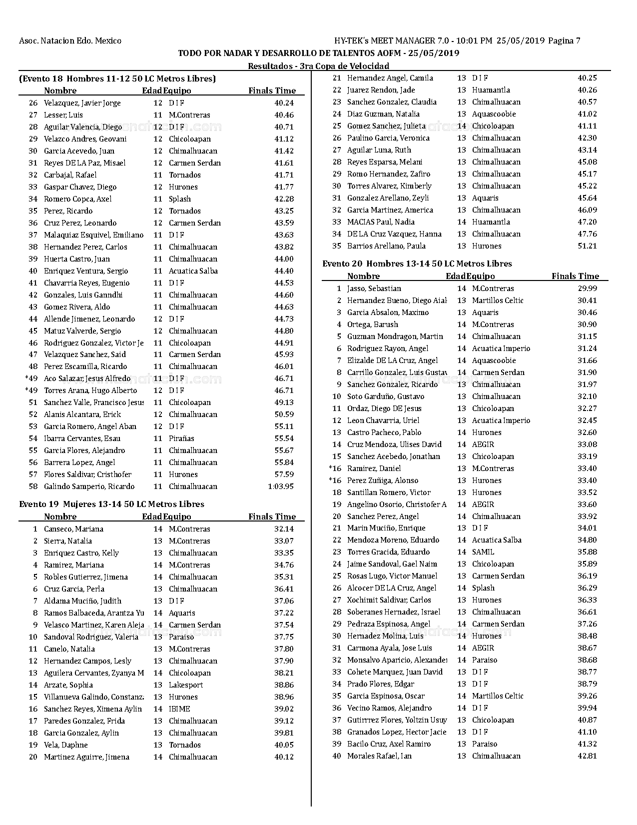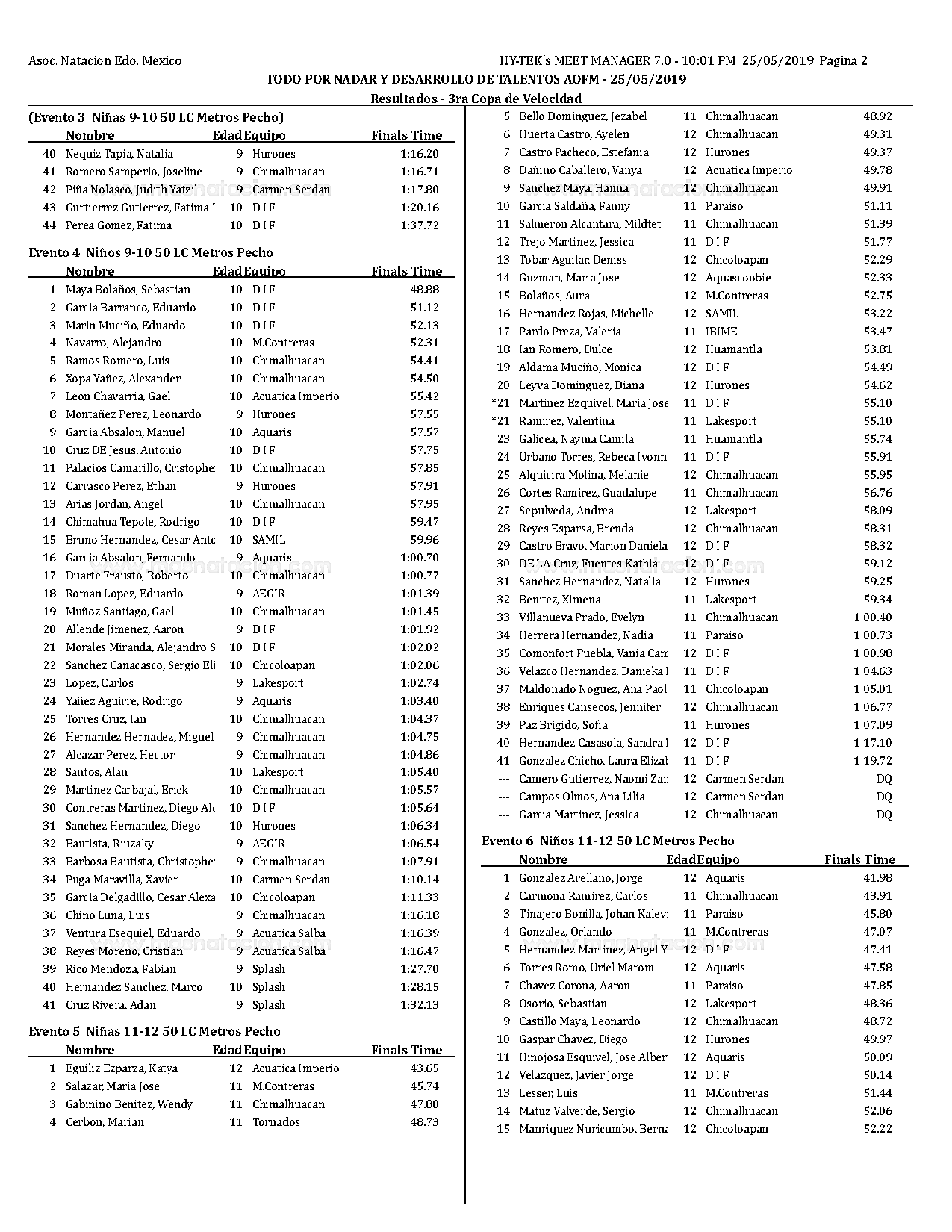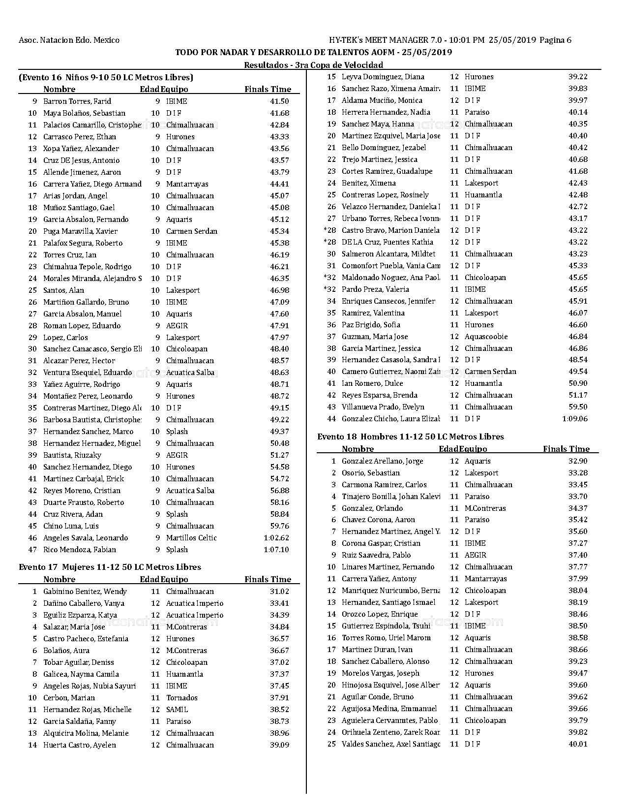 Todo Por Nadar y Desarrollo de Talentos Aofm Sábado 25 de Mayo 2019 Sede Alberca Olímpica Francisco Marquez