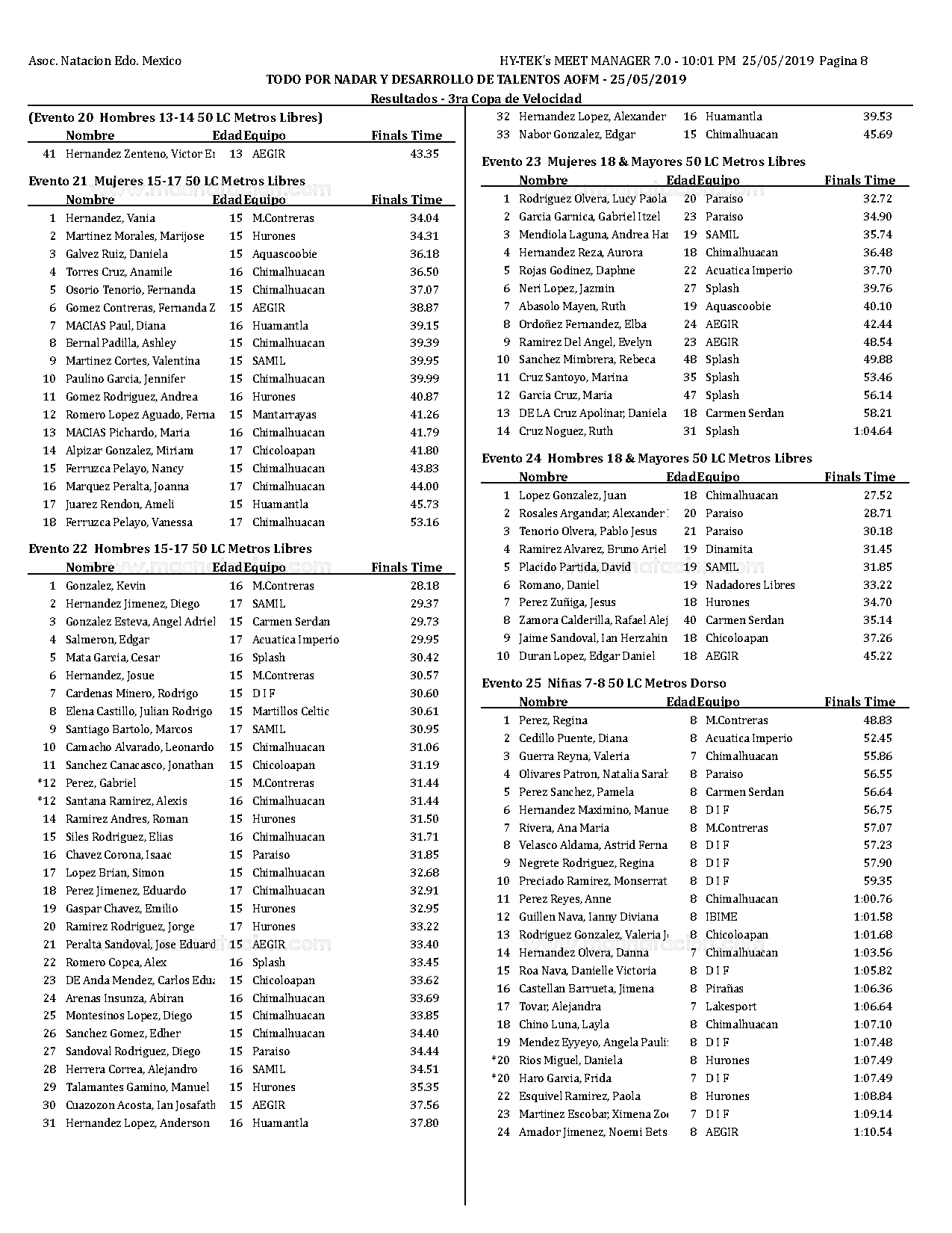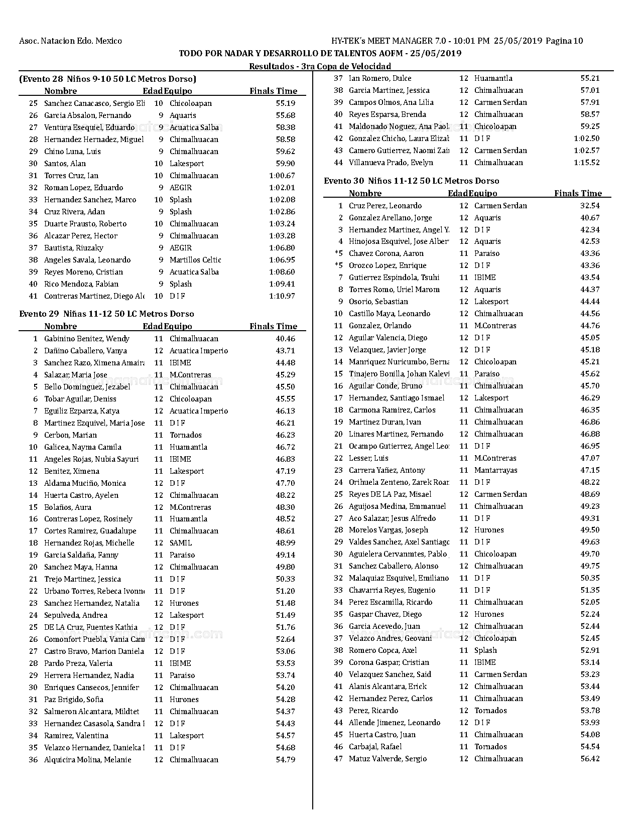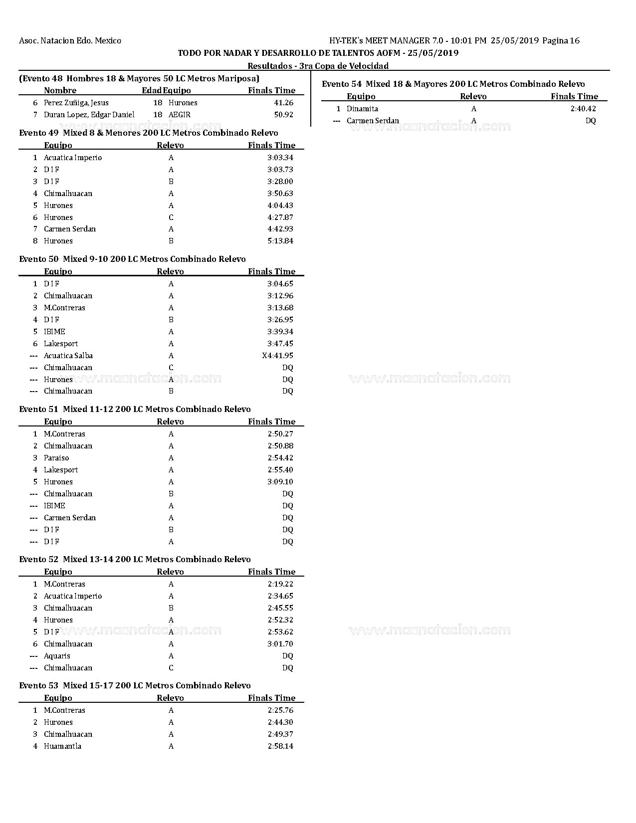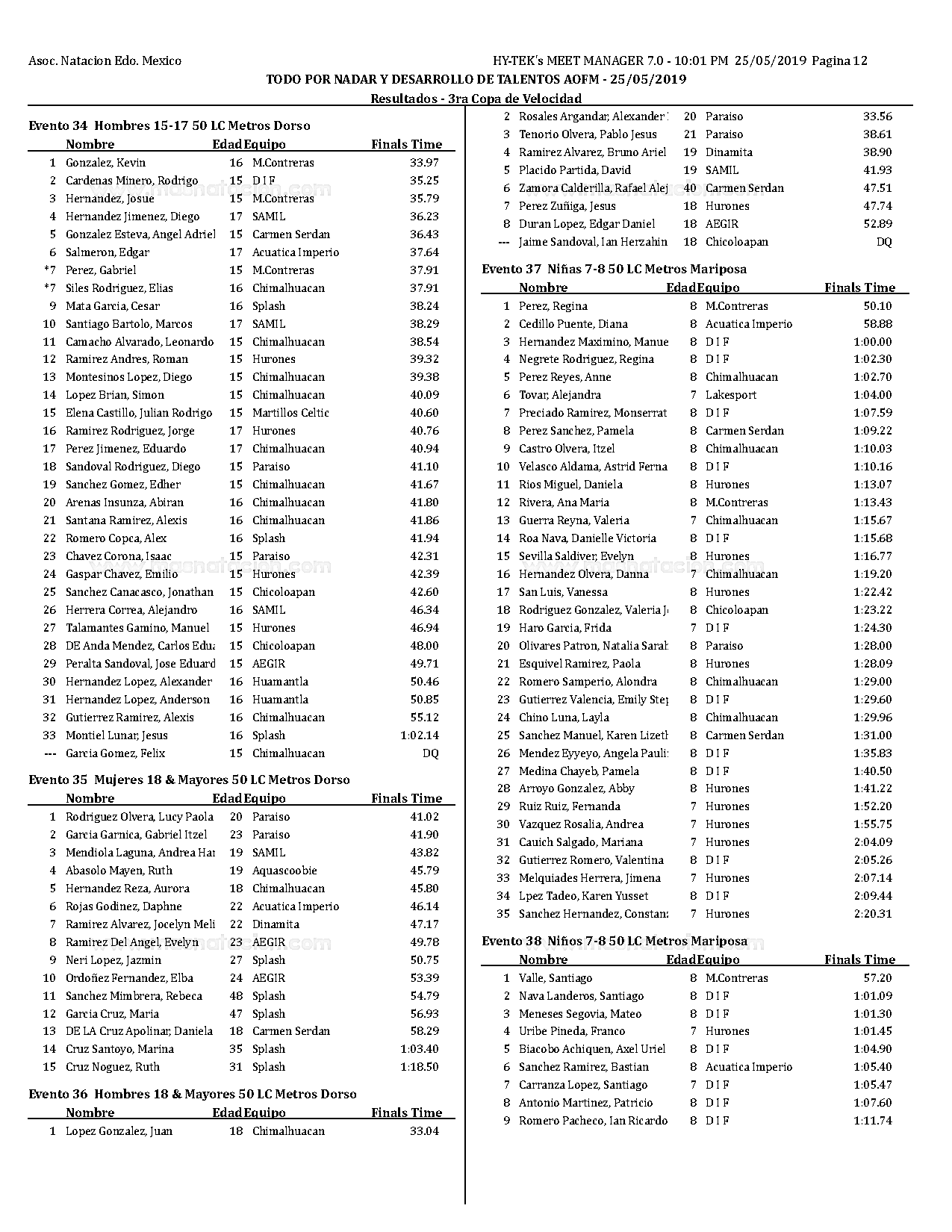 Todo Por Nadar y Desarrollo de Talentos Aofm Sábado 25 de Mayo 2019 Sede Alberca Olímpica Francisco Marquez