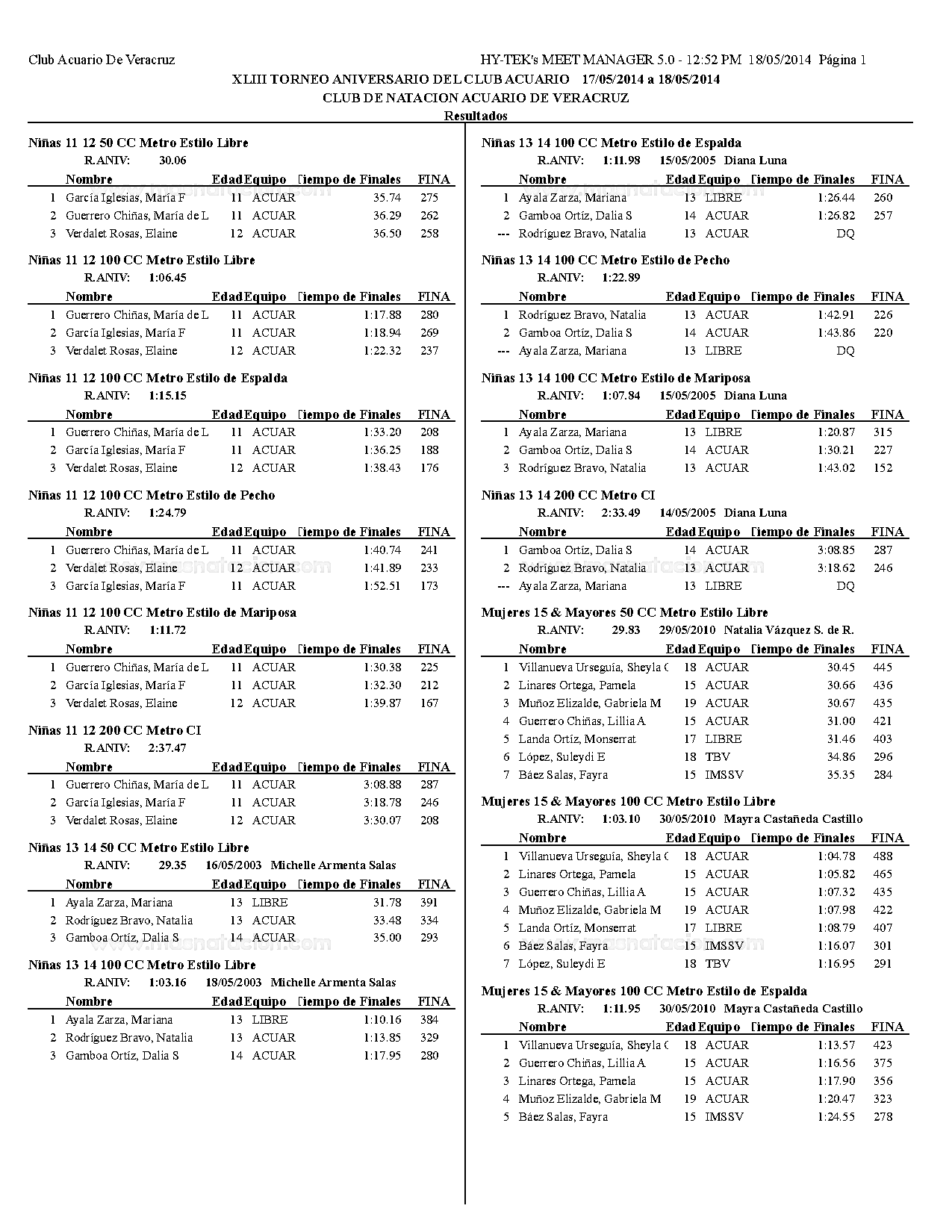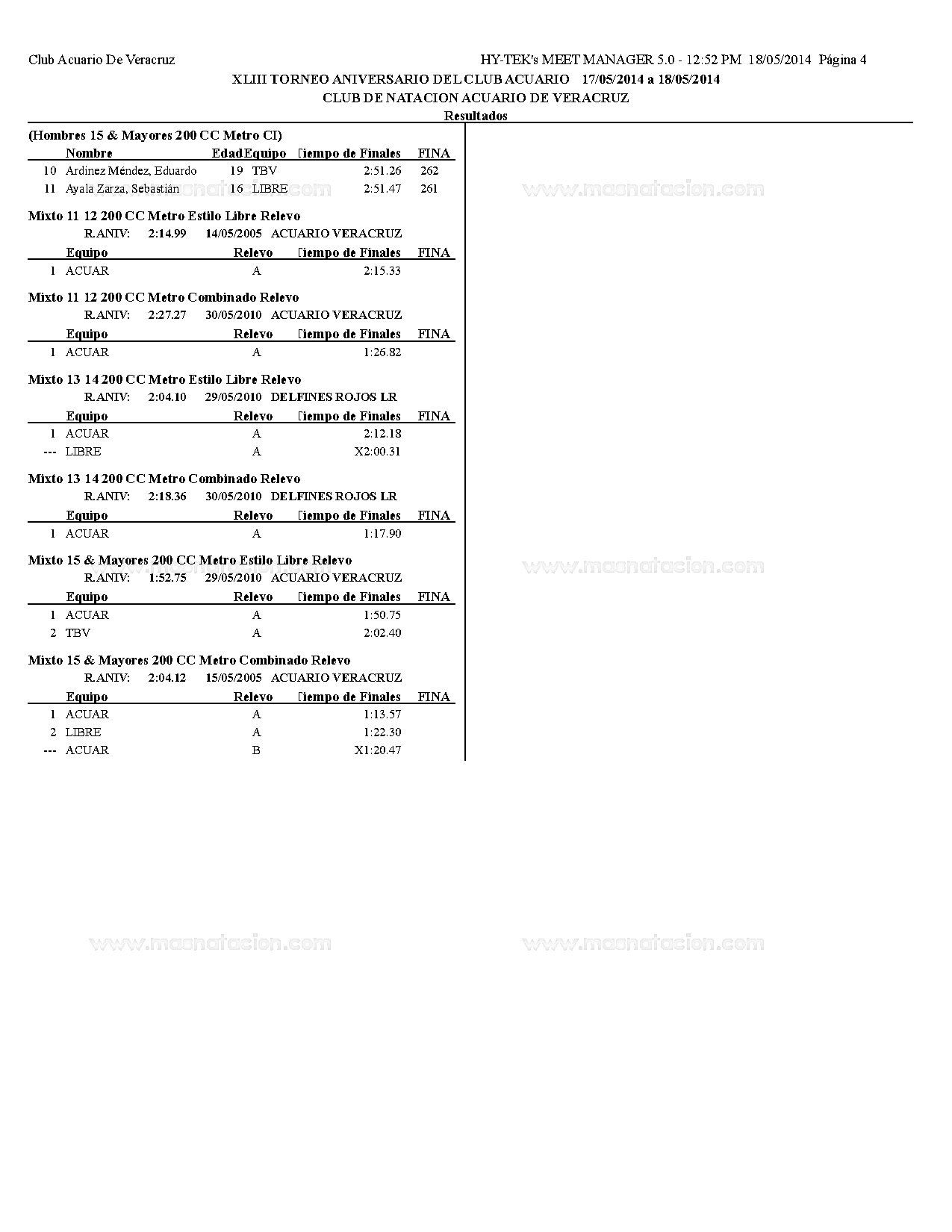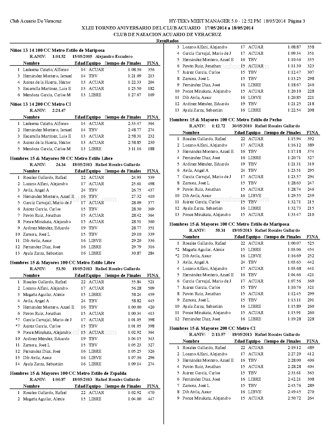 Torneo XLIII Aniversario del Club Acuario 2014