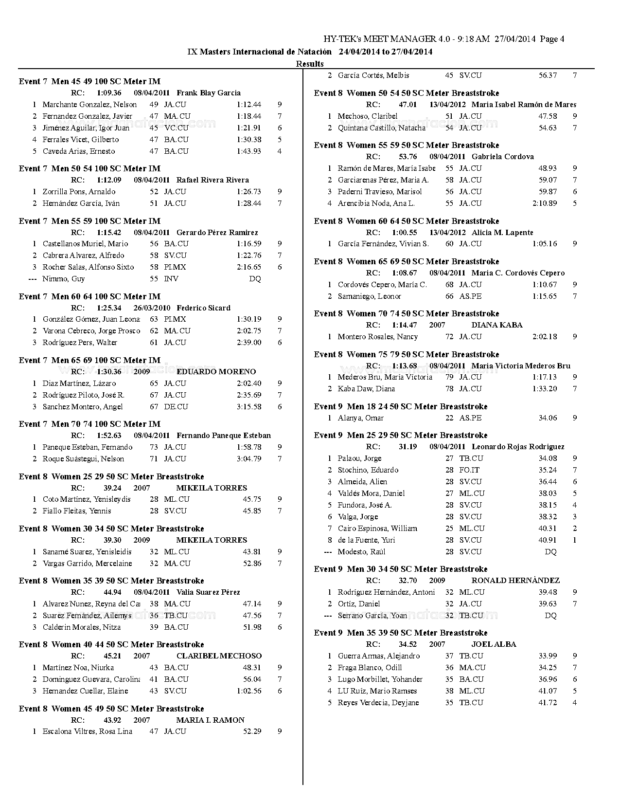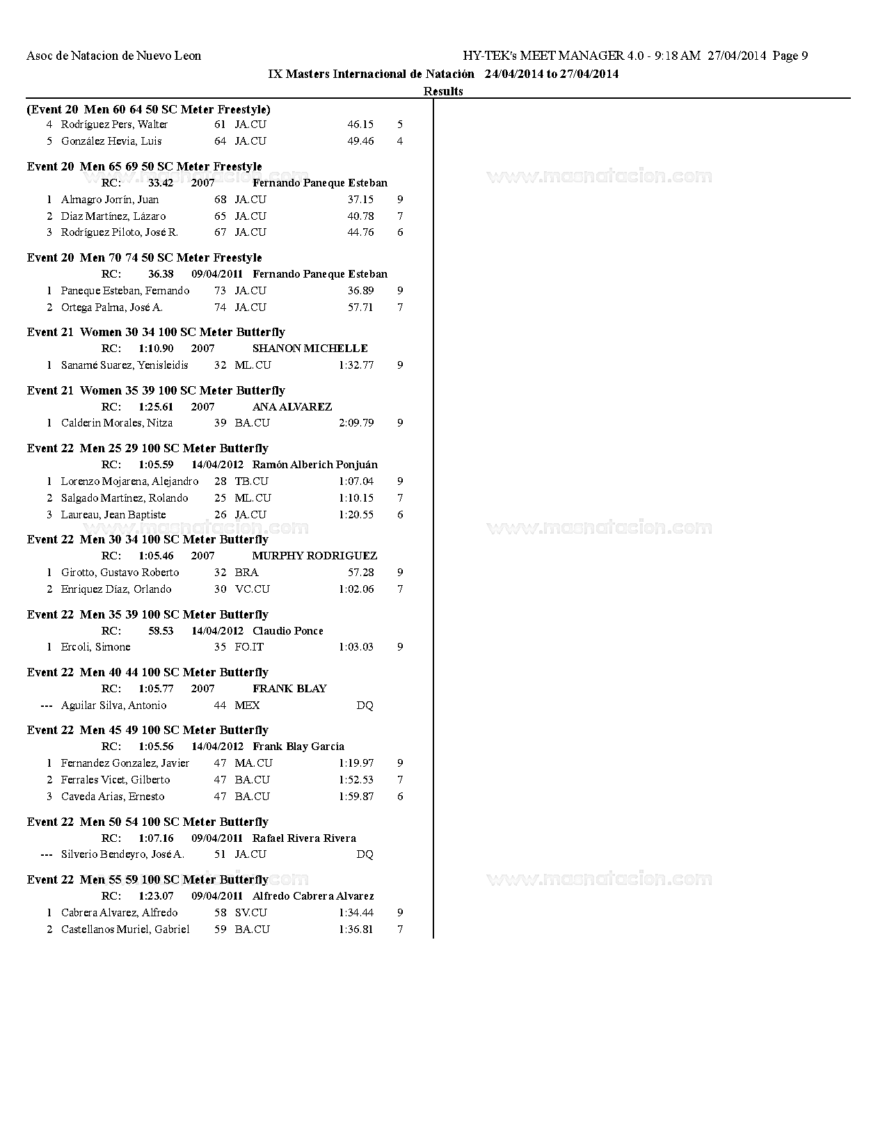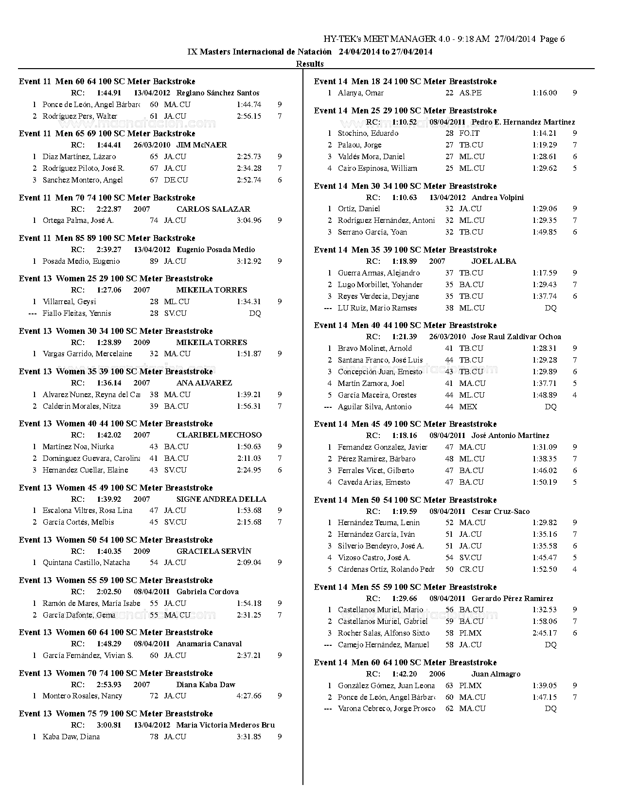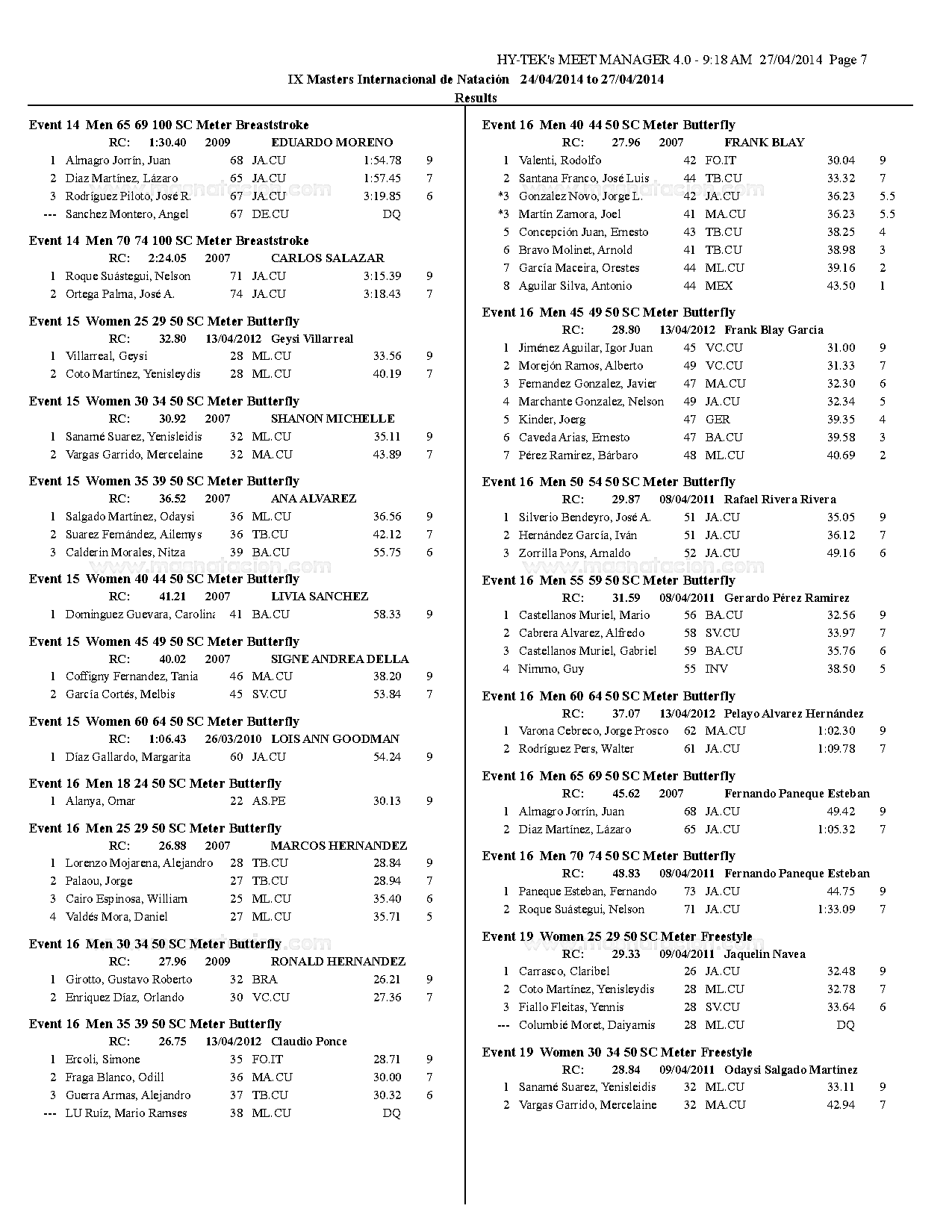 VII Copa Master de Natación Curso Corto Ramón Cordovés 2014