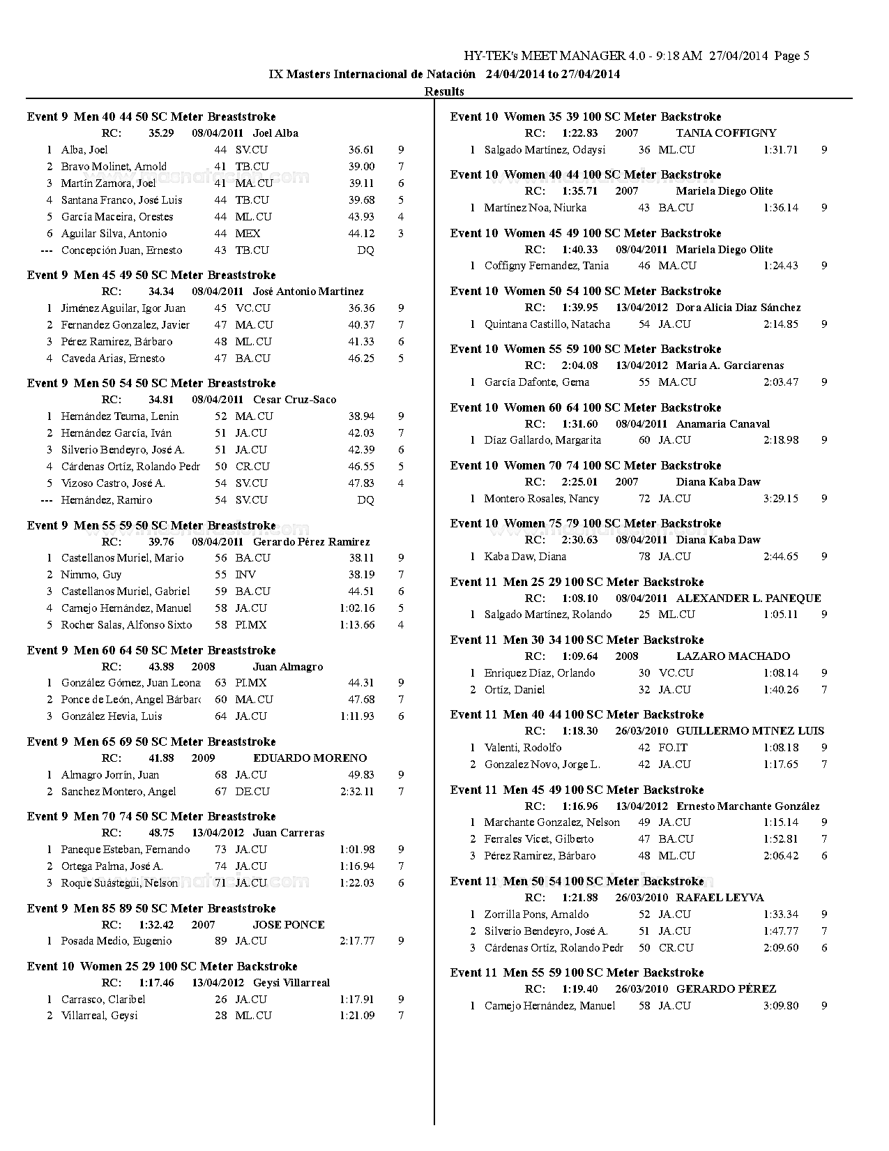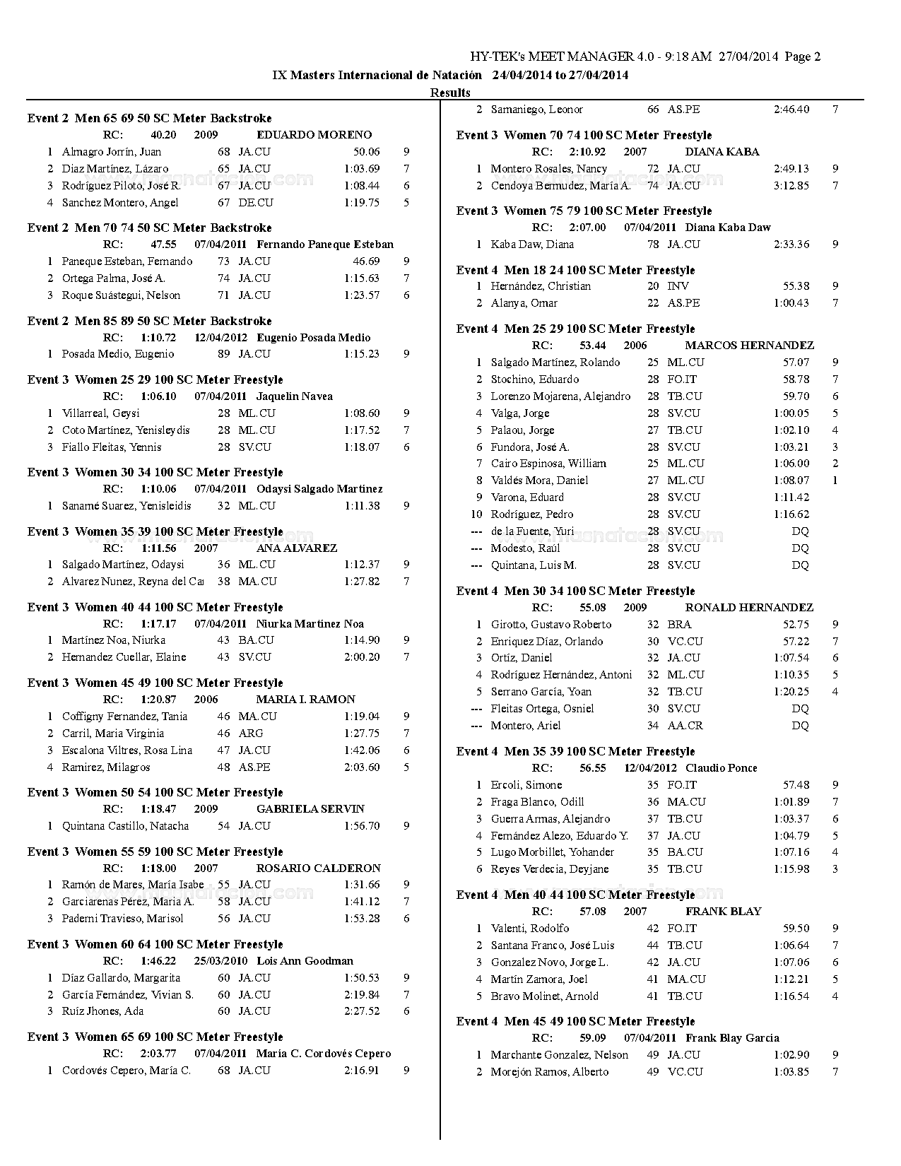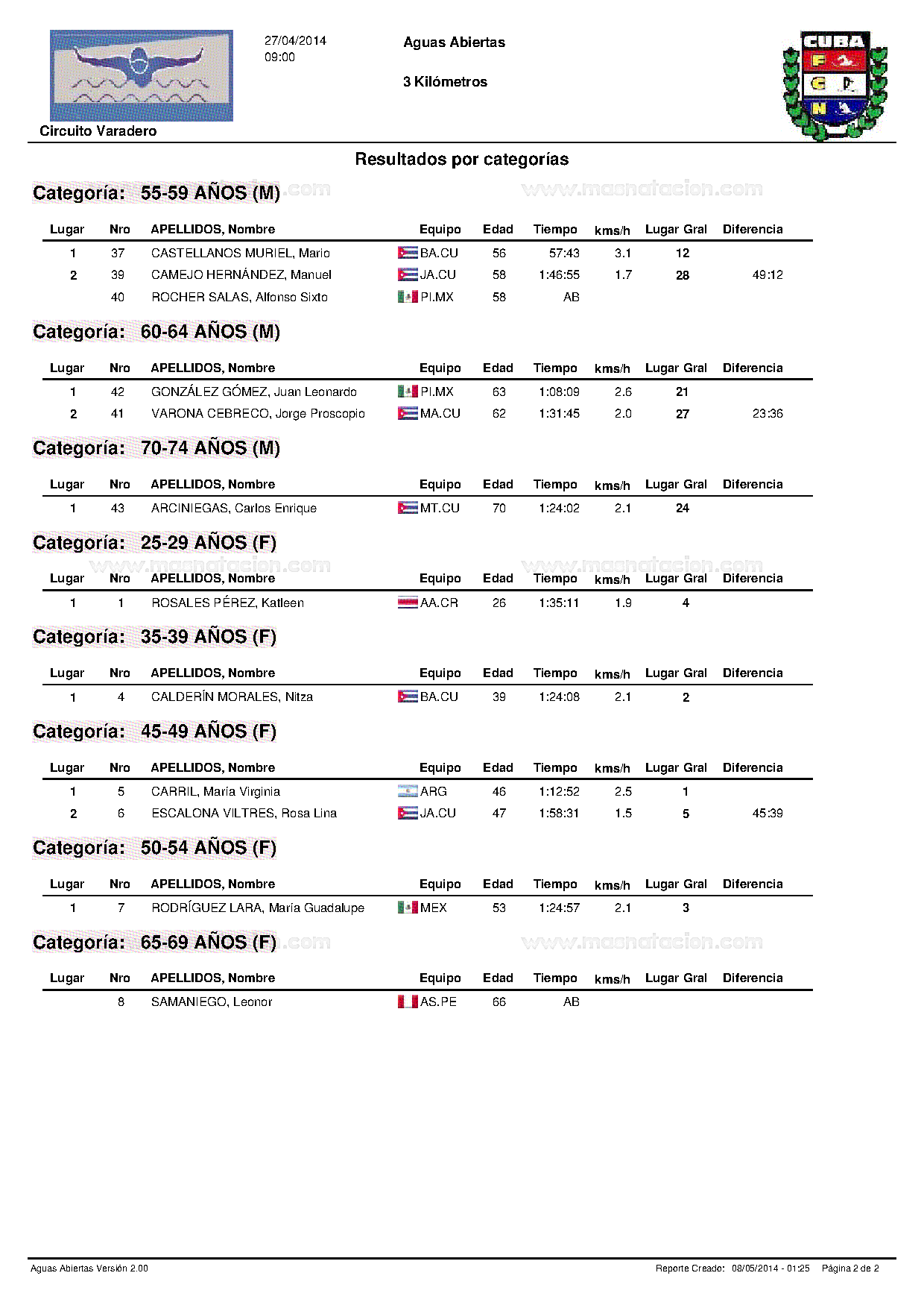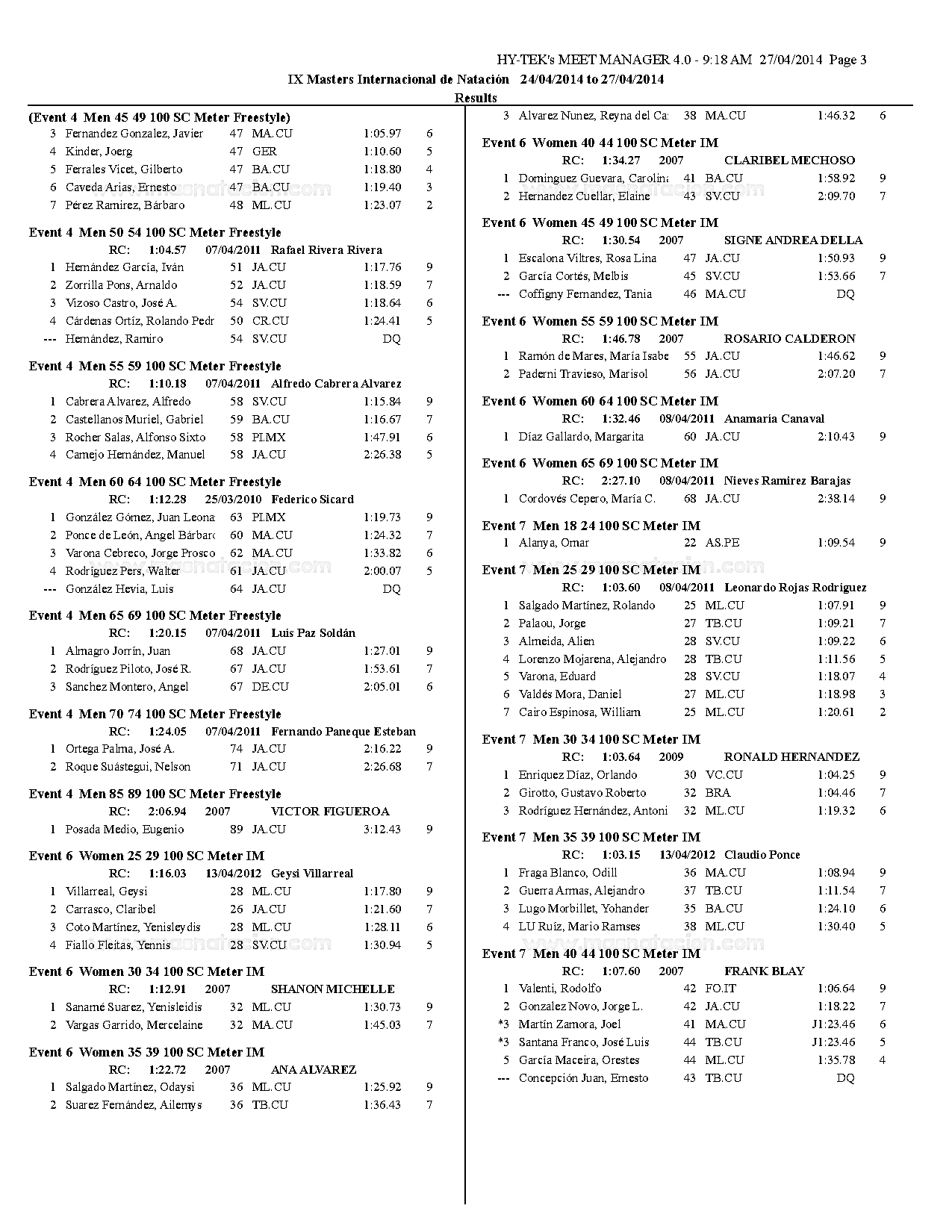 VII Copa Master de Natación Curso Corto Ramón Cordovés 2014
