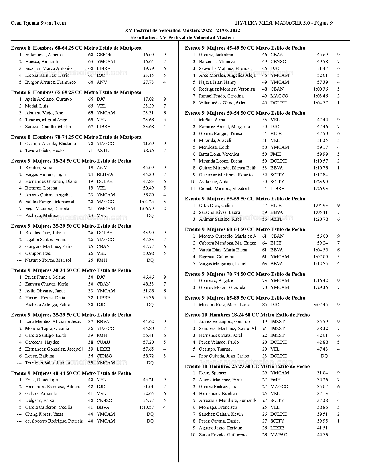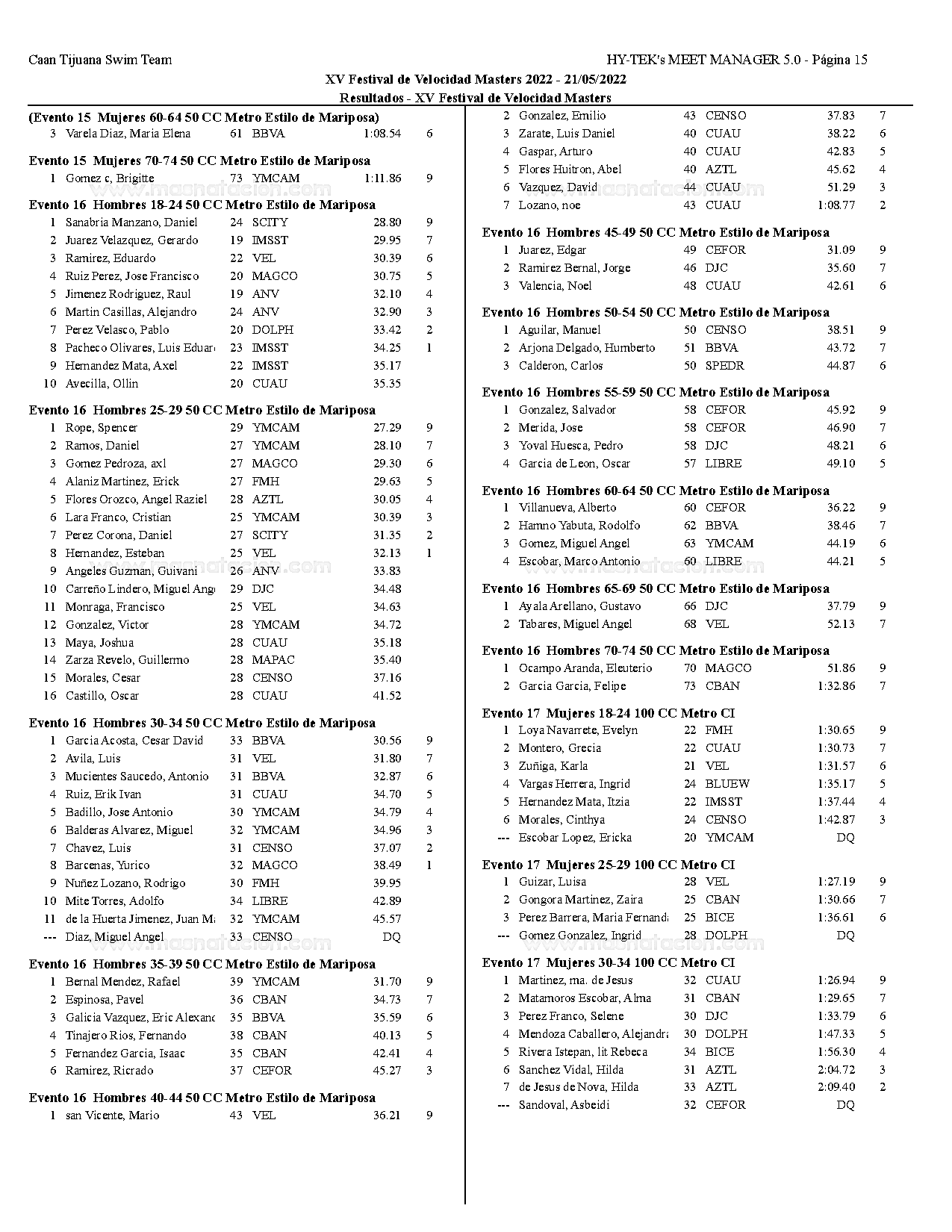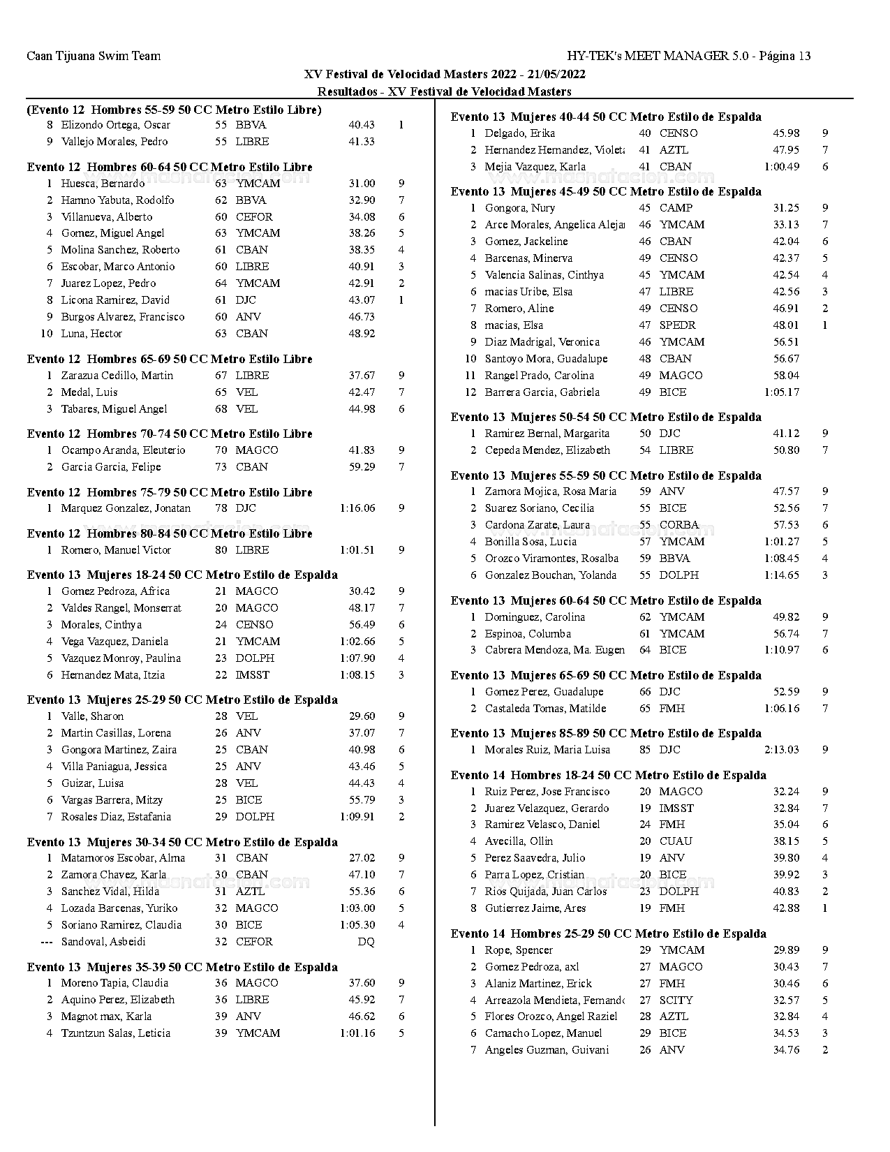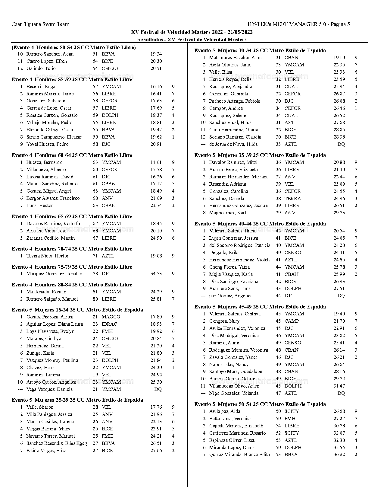 XV Festival de Velocidad de Natación Master Ymca 2022
