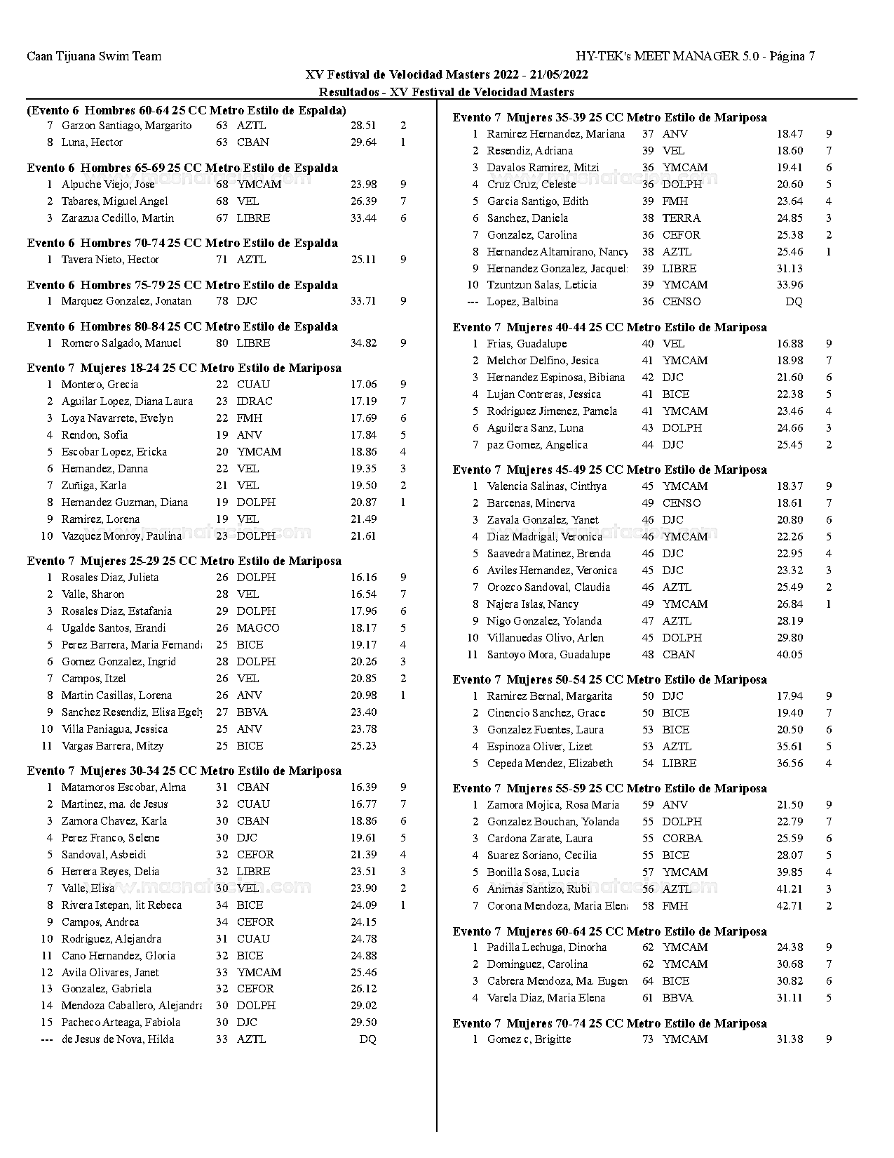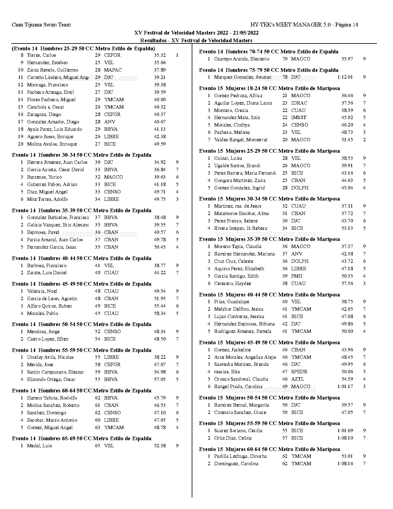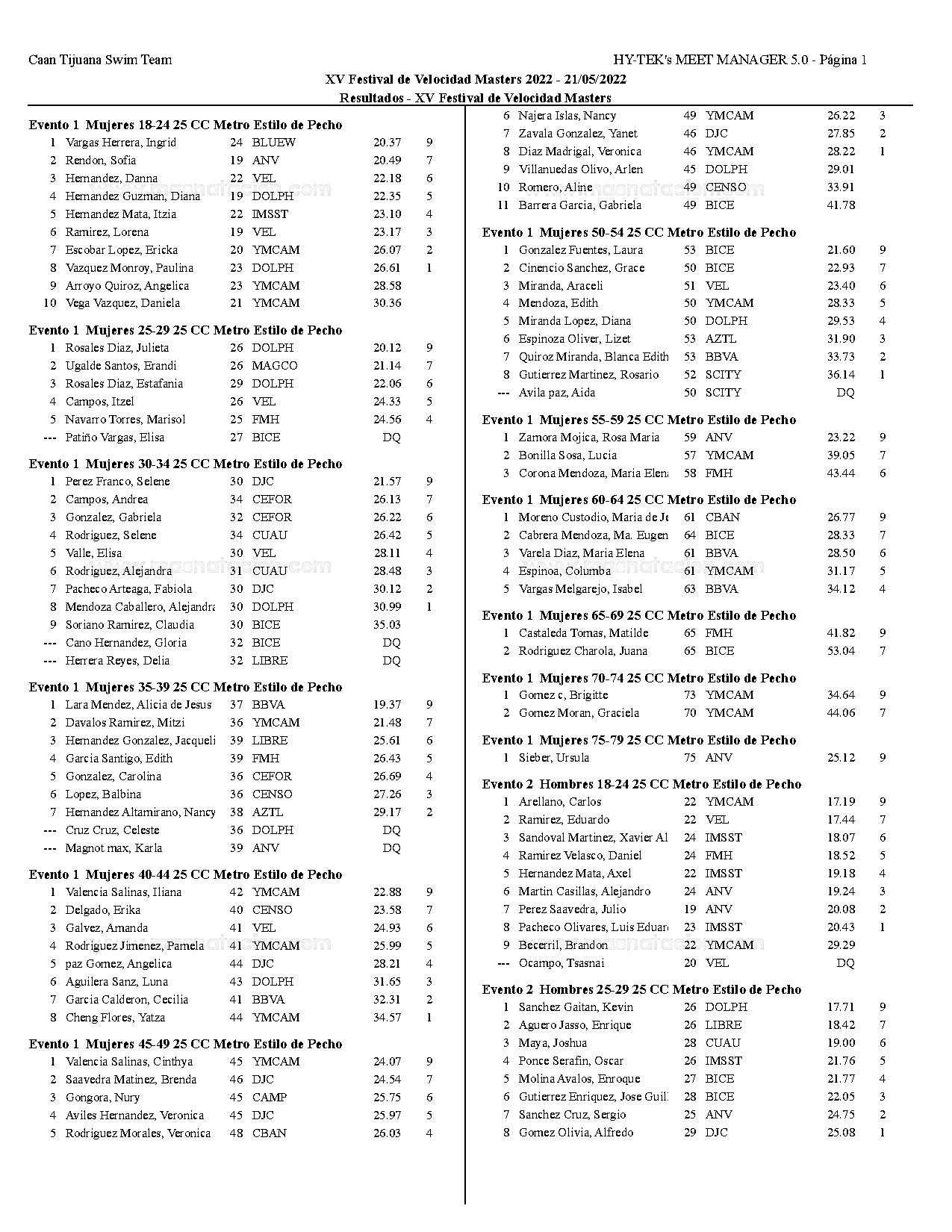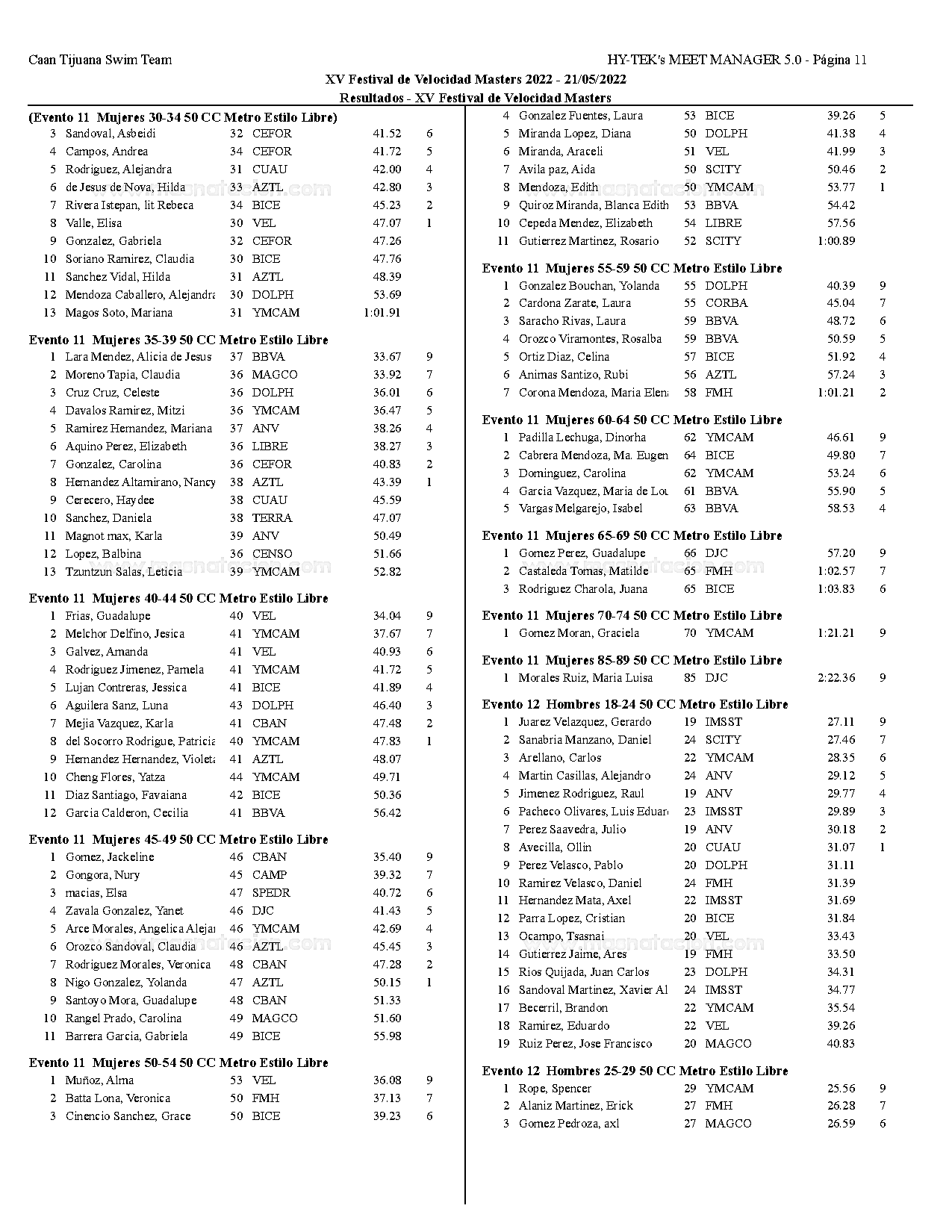 XV Festival de Velocidad de Natación Master Ymca 2022