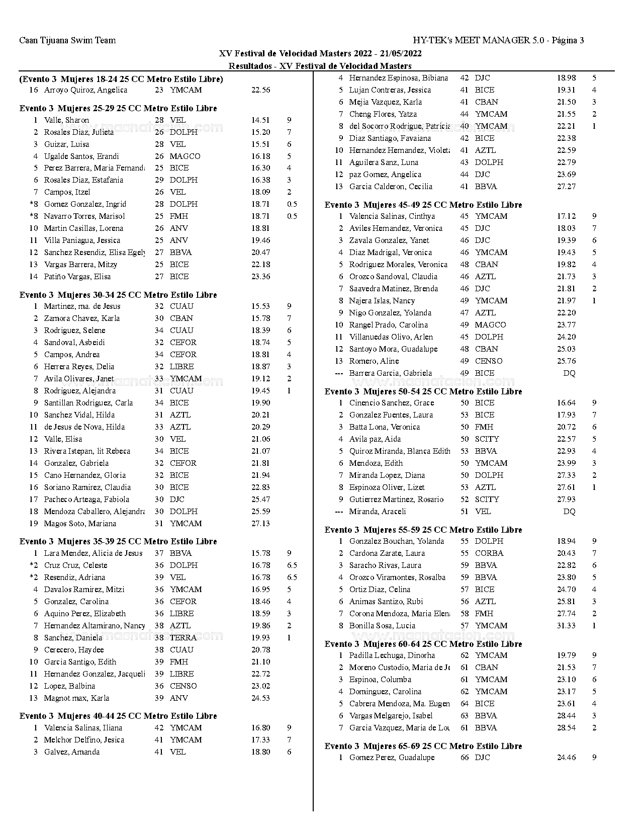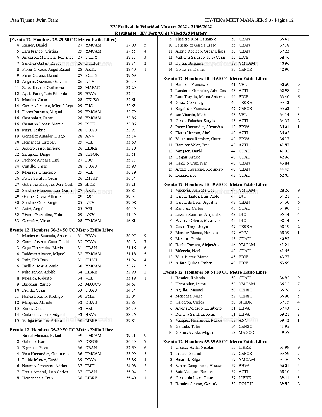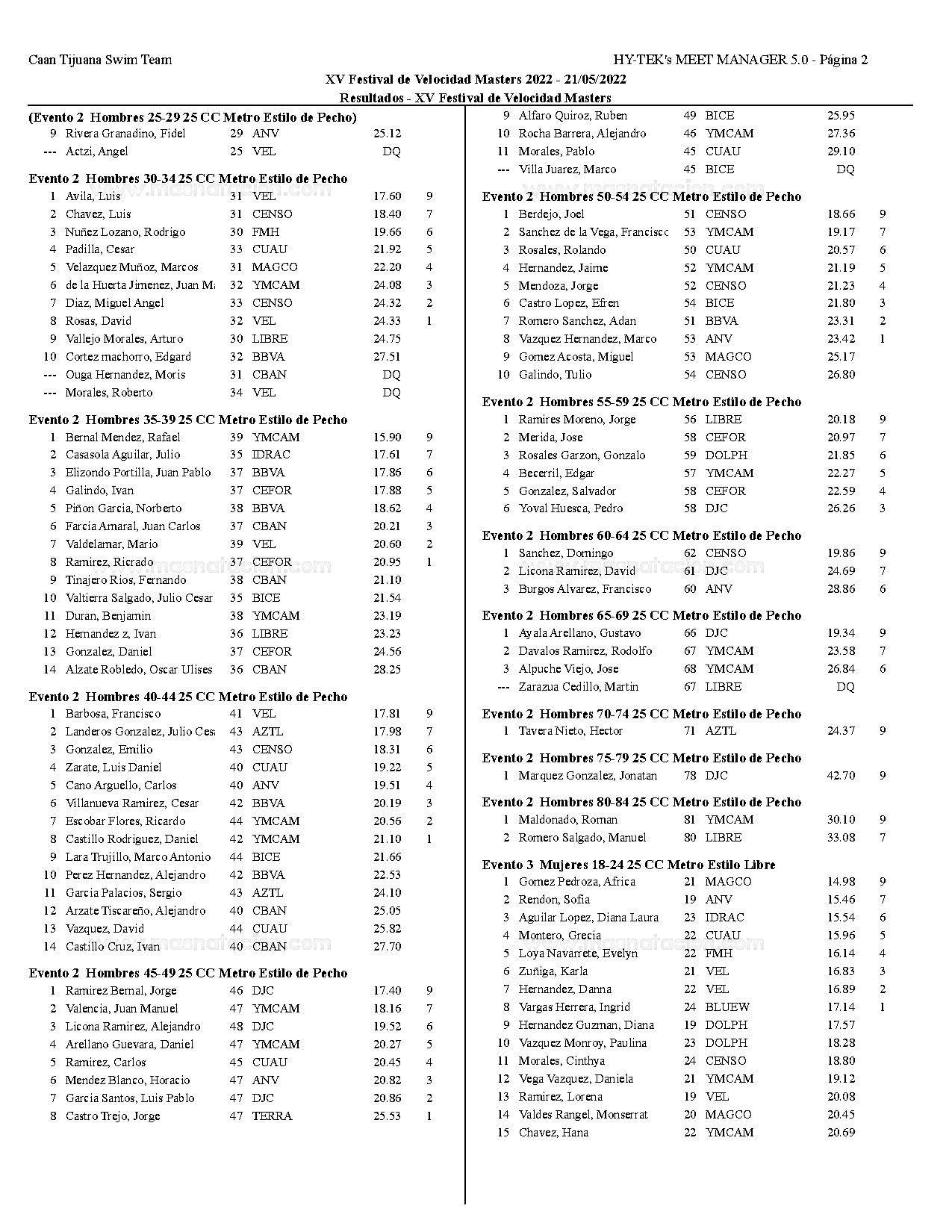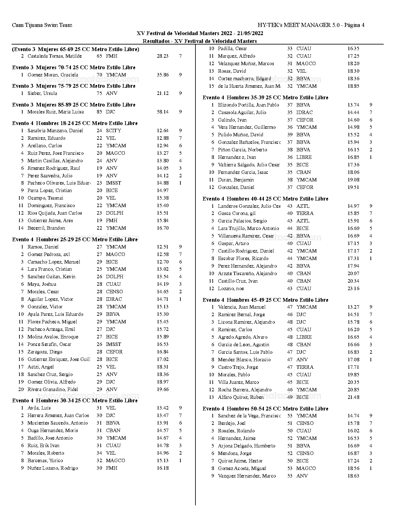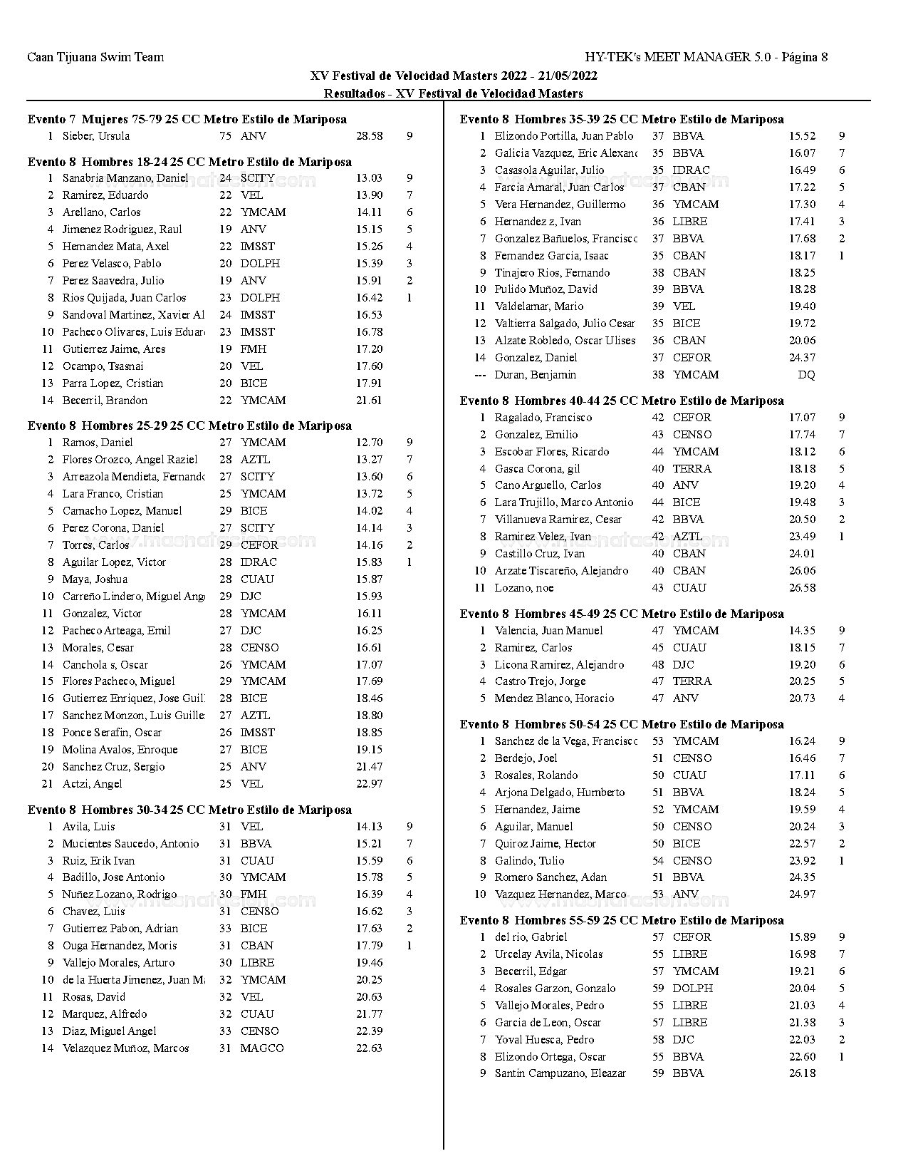 XV Festival de Velocidad de Natación Master Ymca 2022