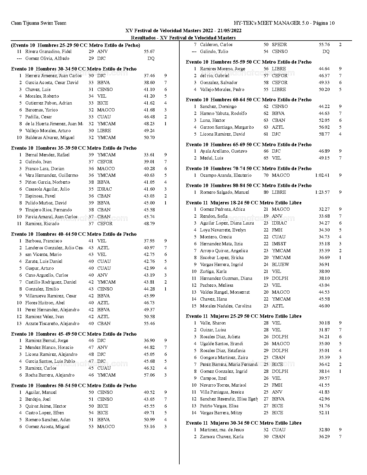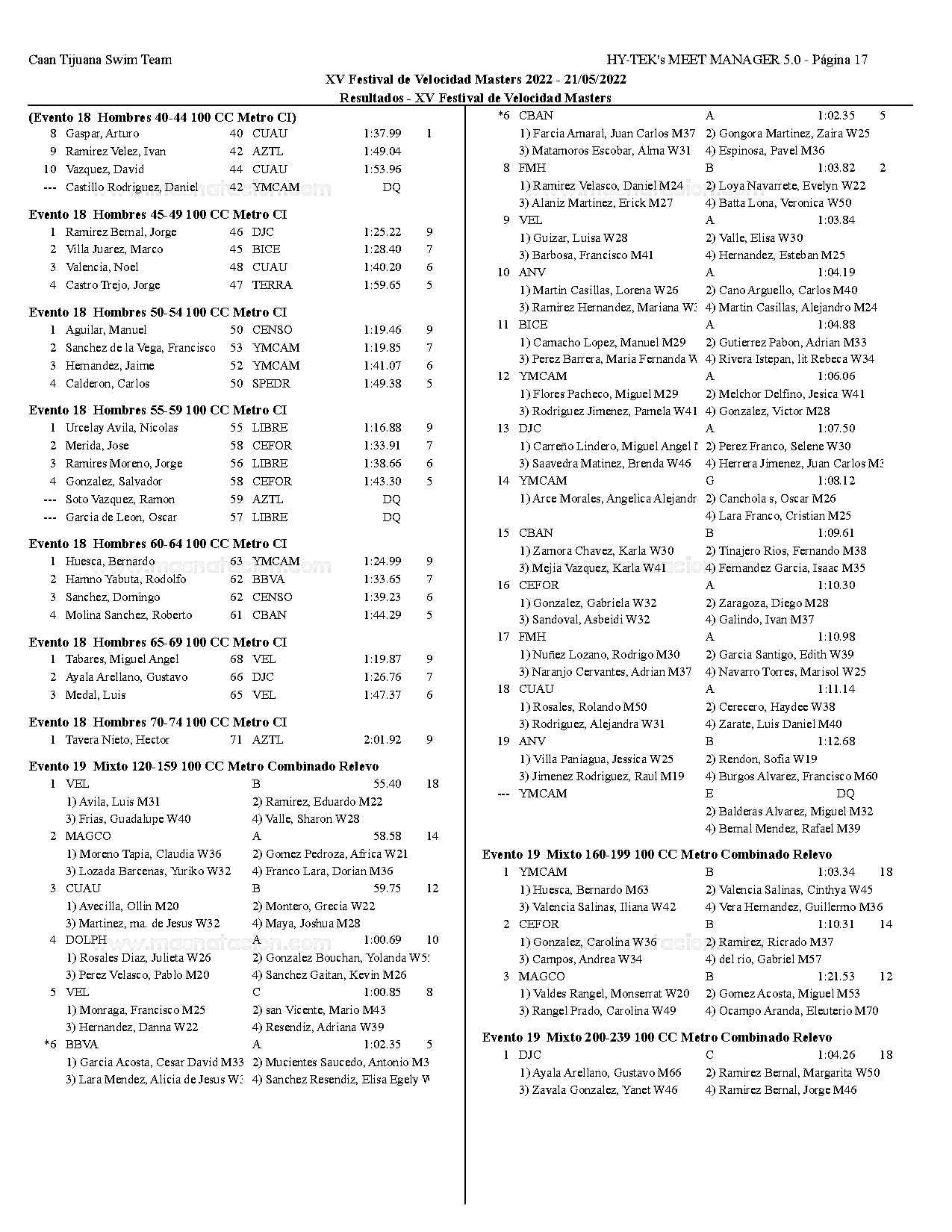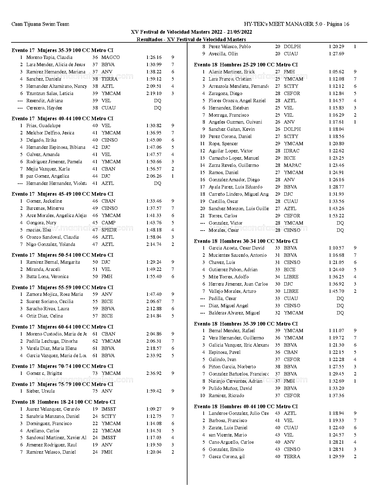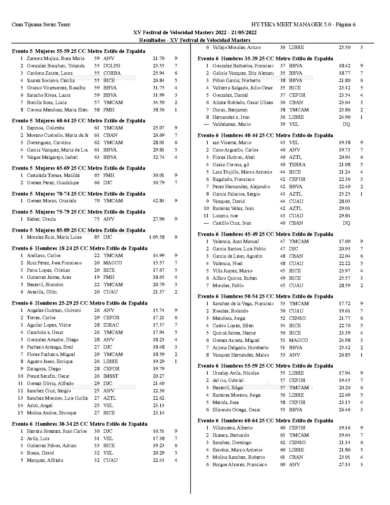 XV Festival de Velocidad de Natación Master Ymca 2022