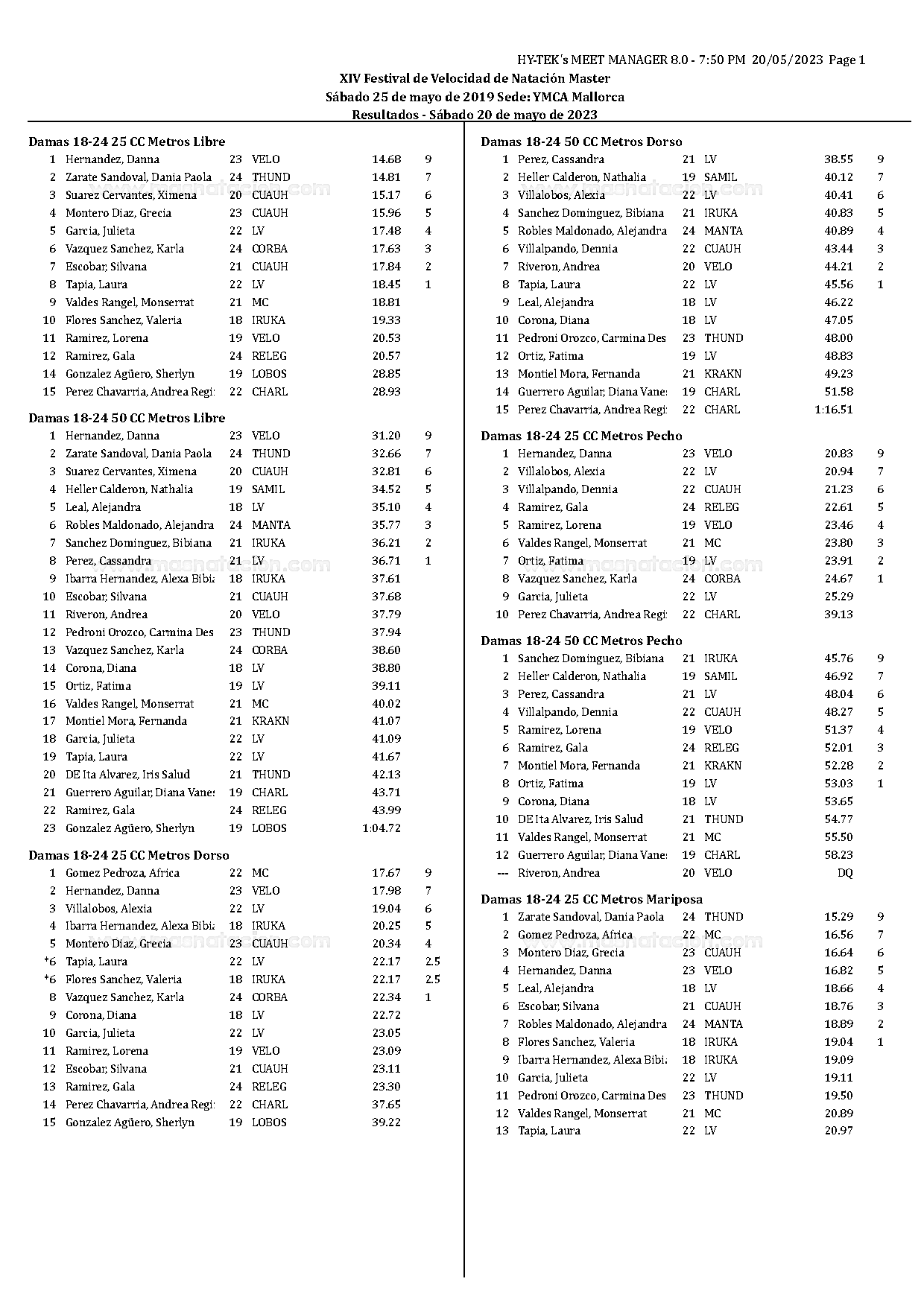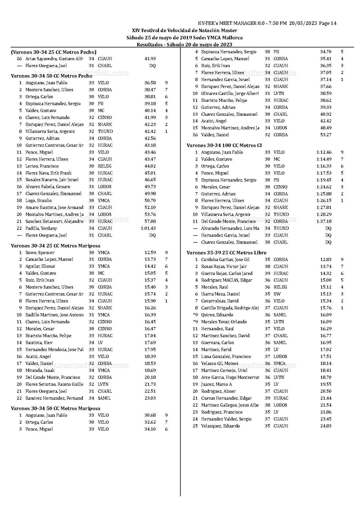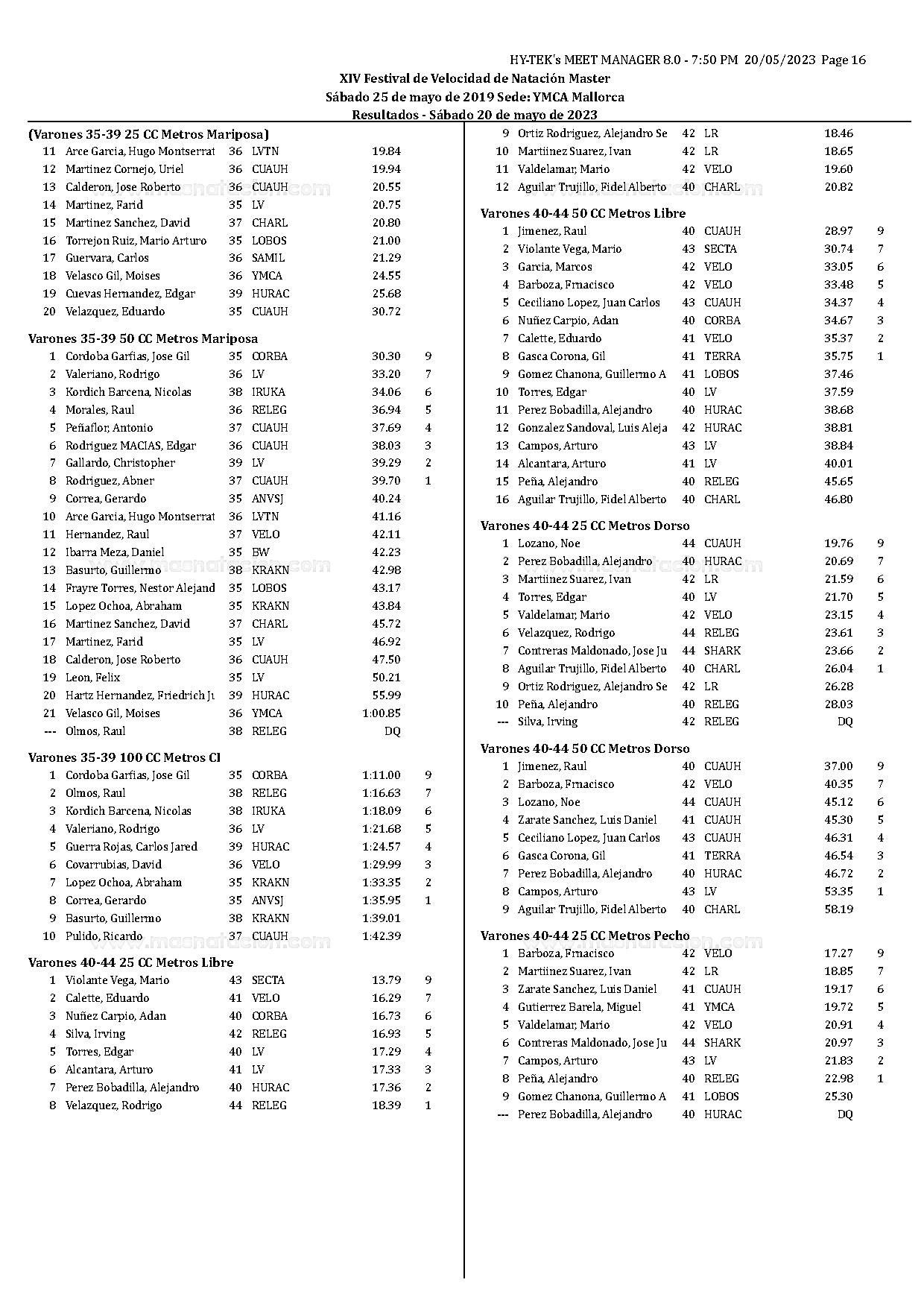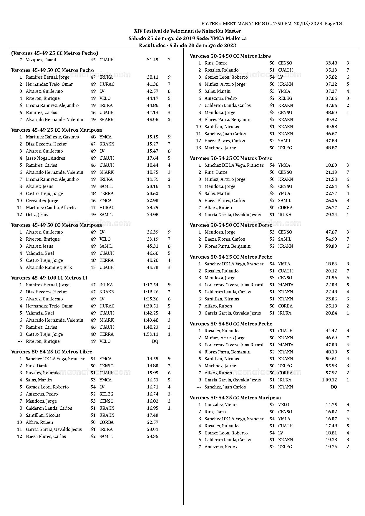 XVI Festicval de Velocidad de Natacion Master Ymca Mallorca 2023