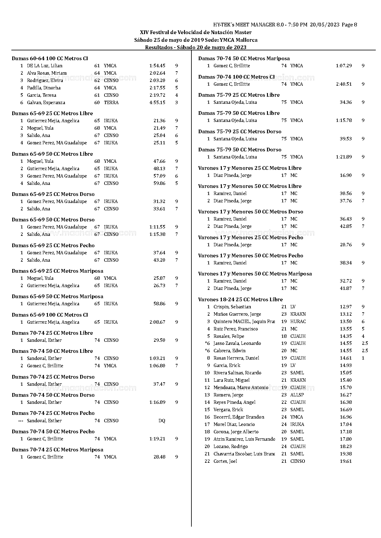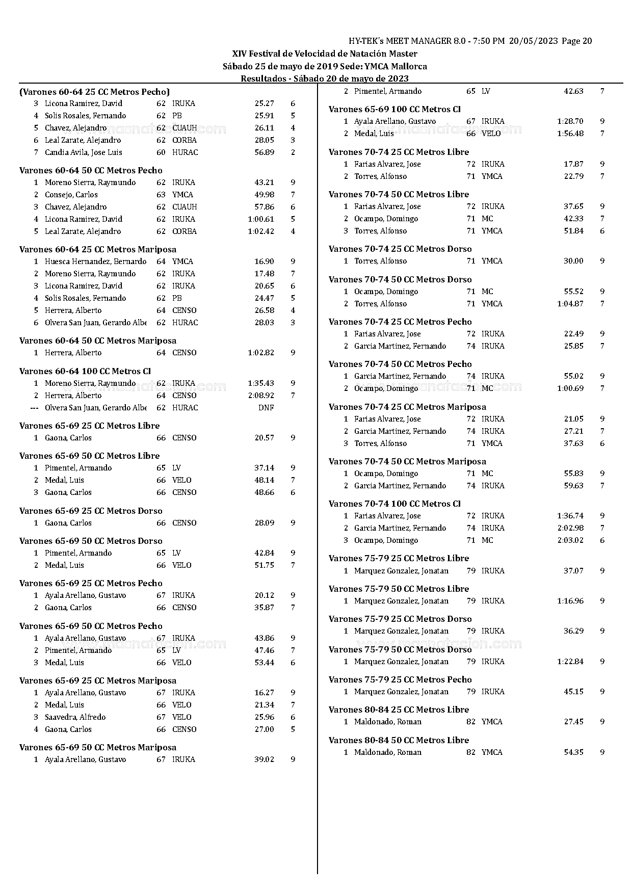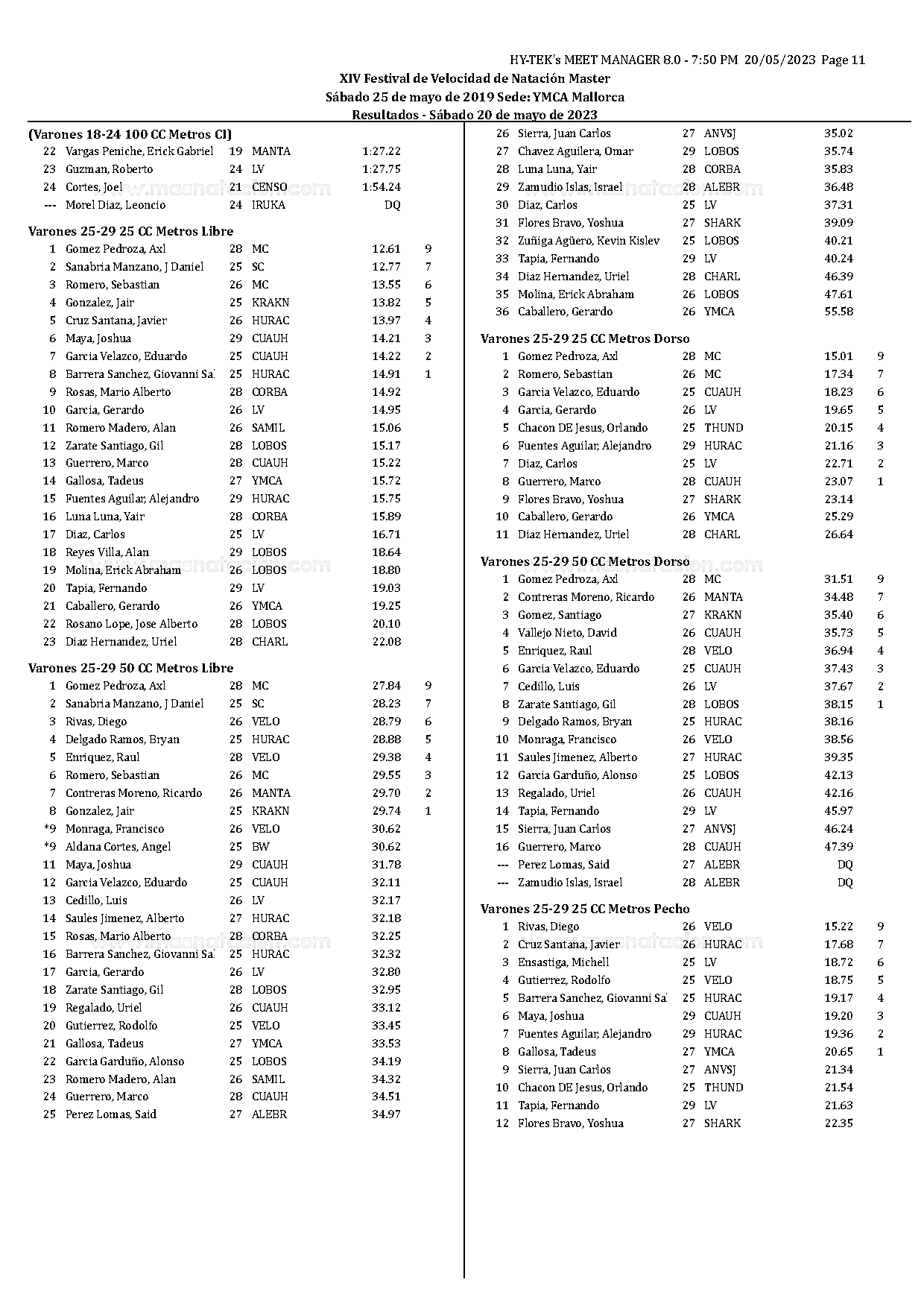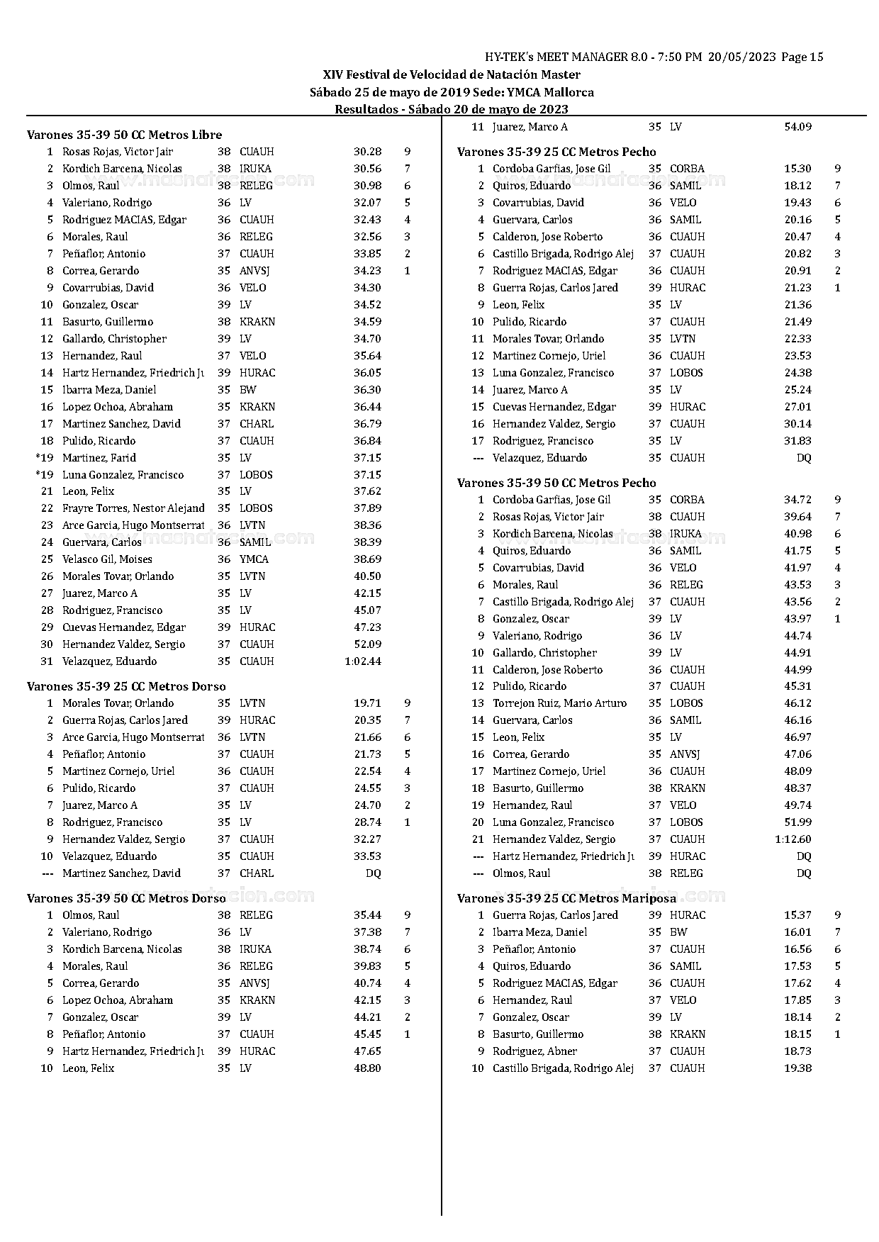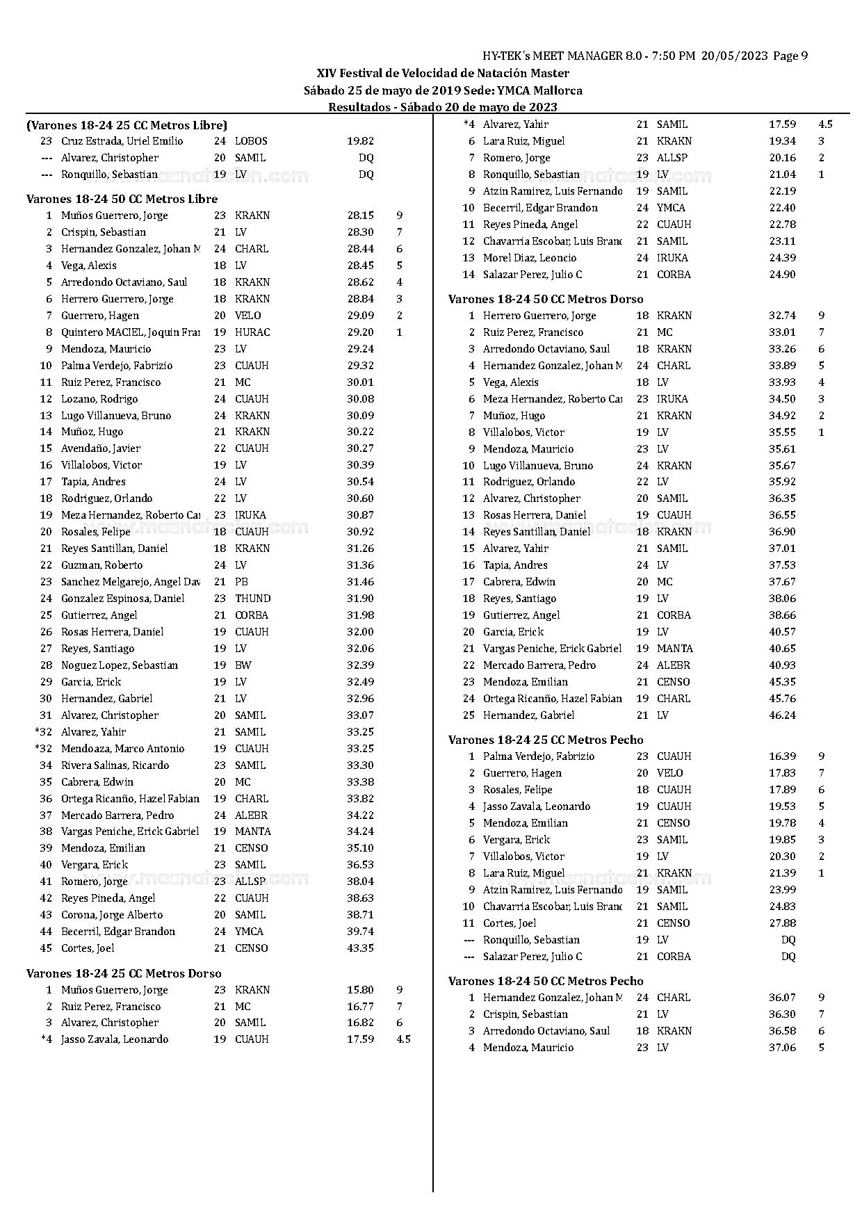 XVI Festicval de Velocidad de Natacion Master Ymca Mallorca 2023