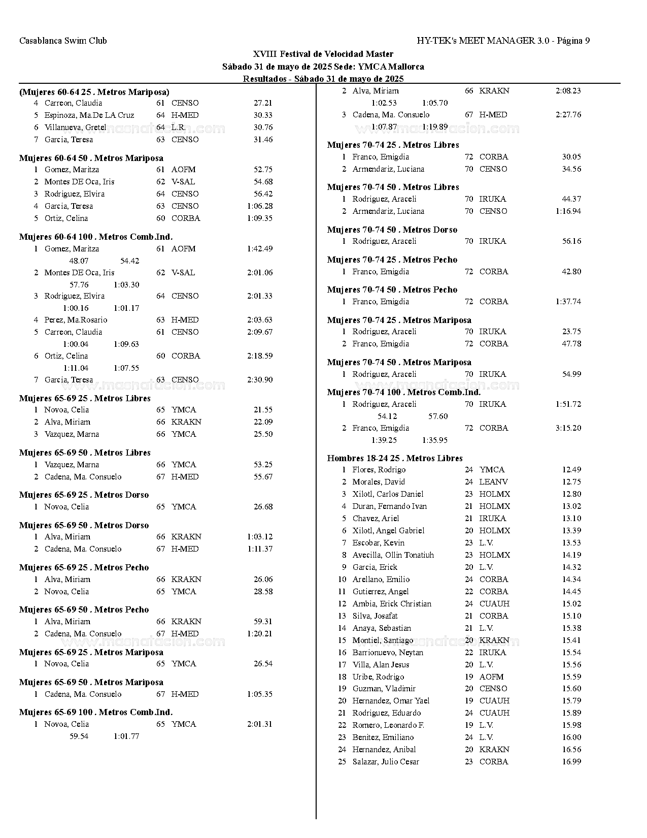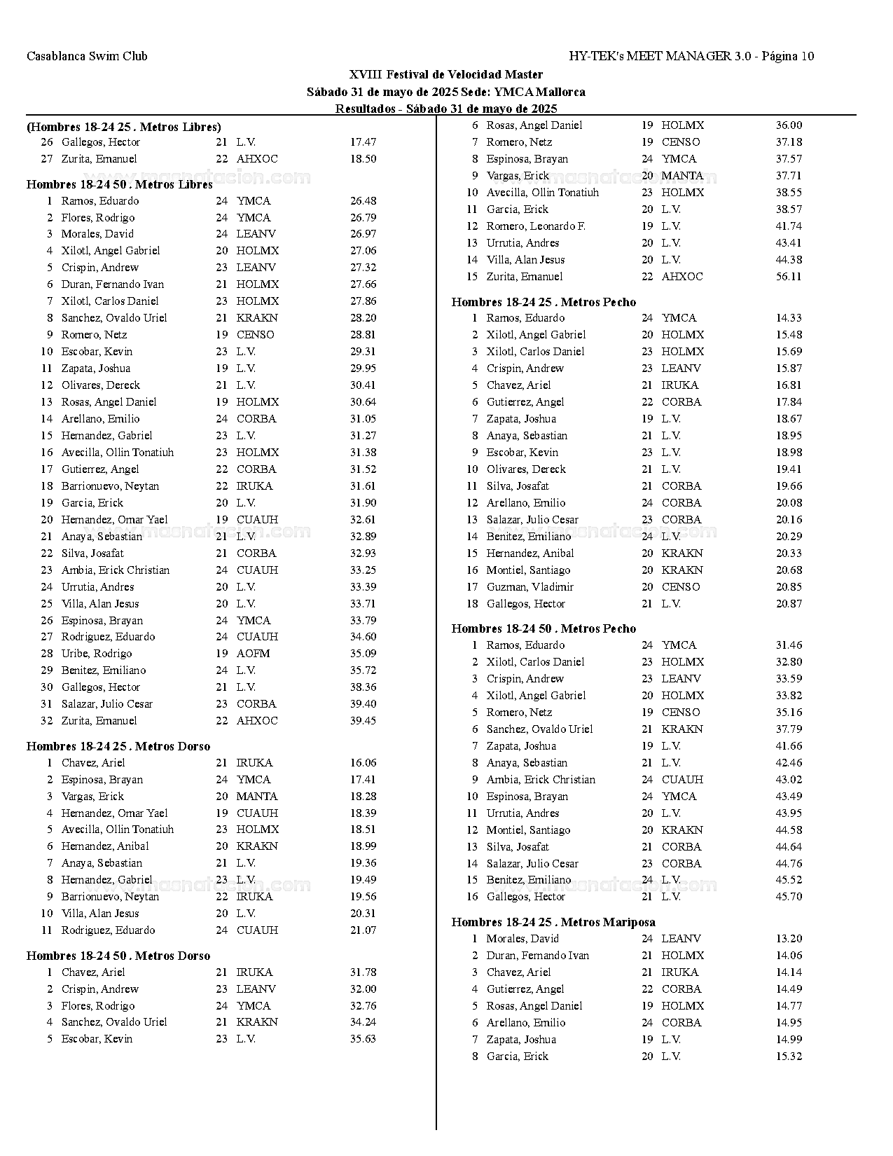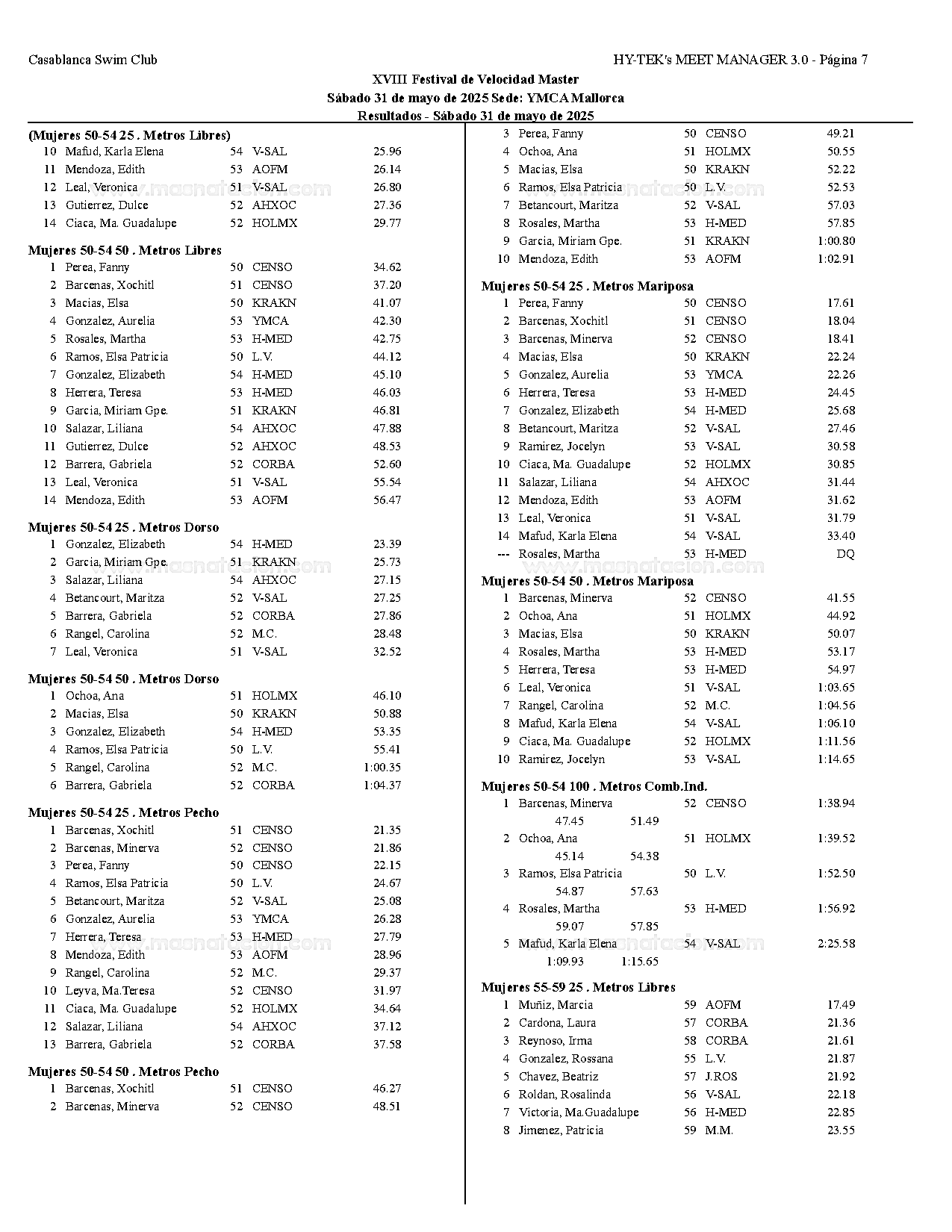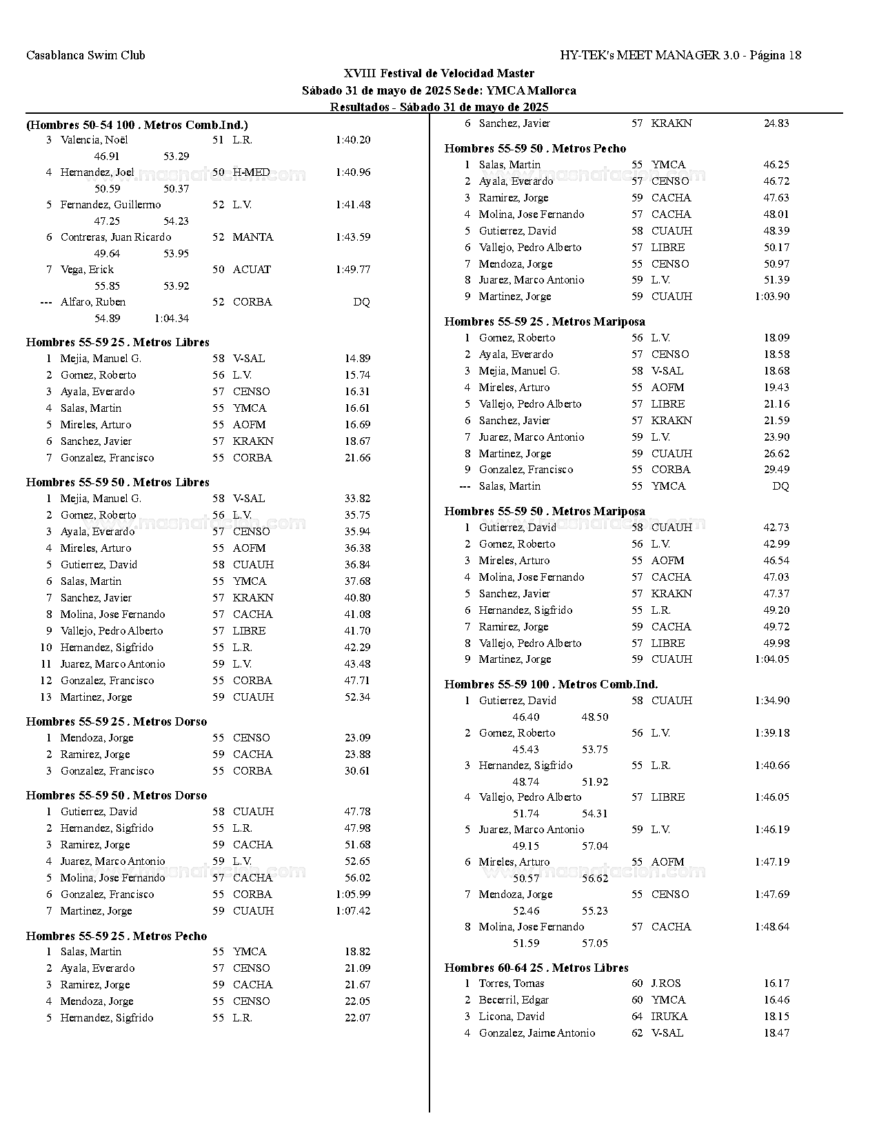 XVIII Festival de Velocidad de Natacion Master 2025