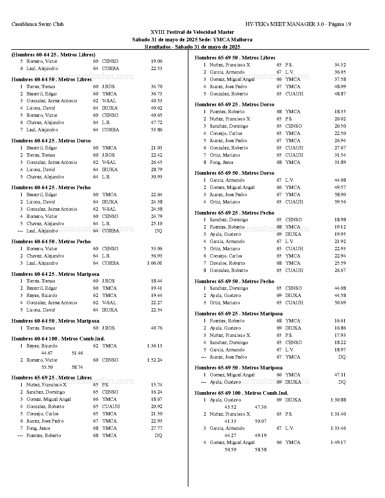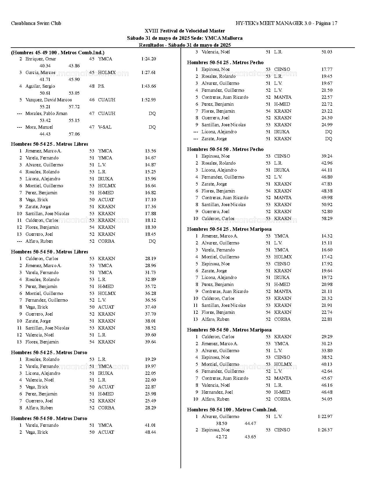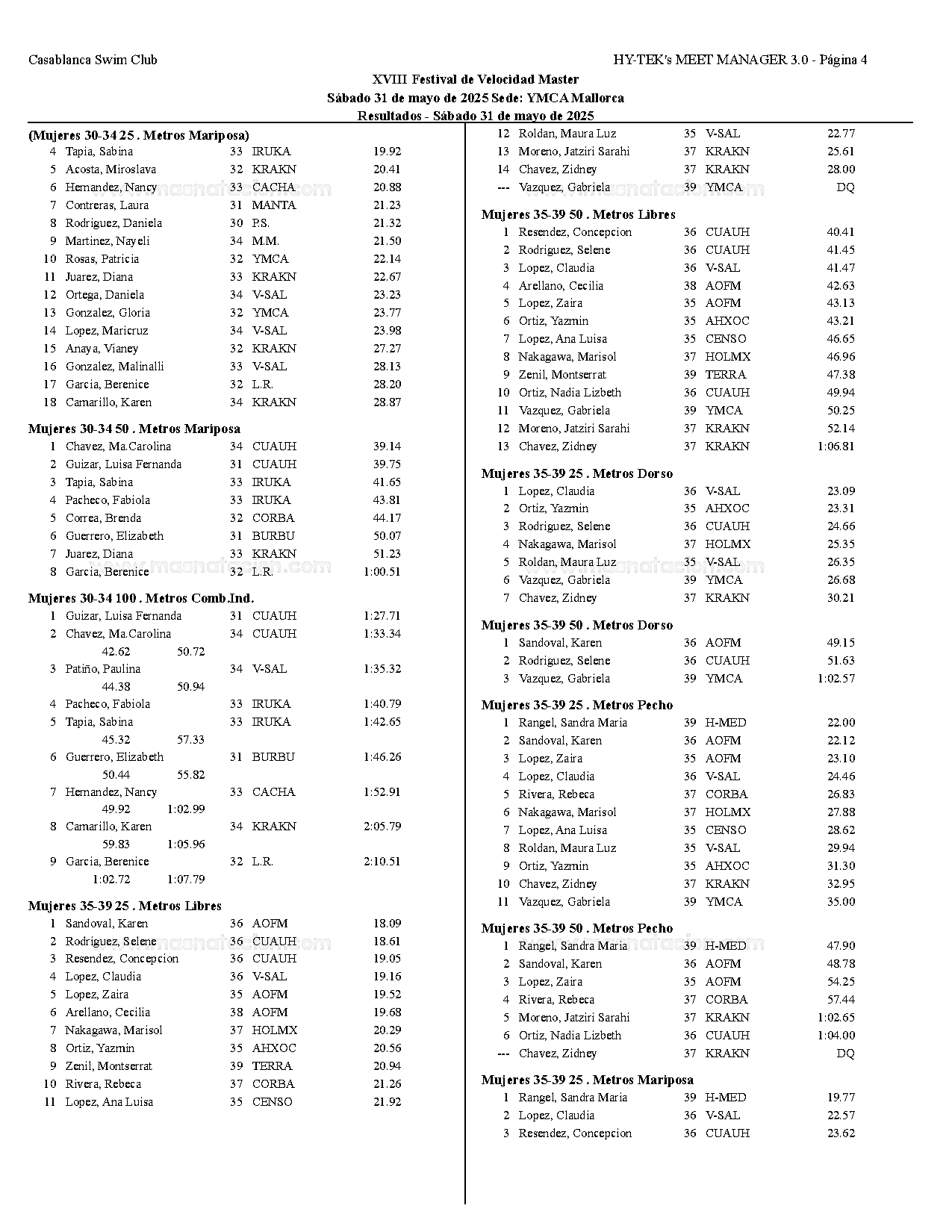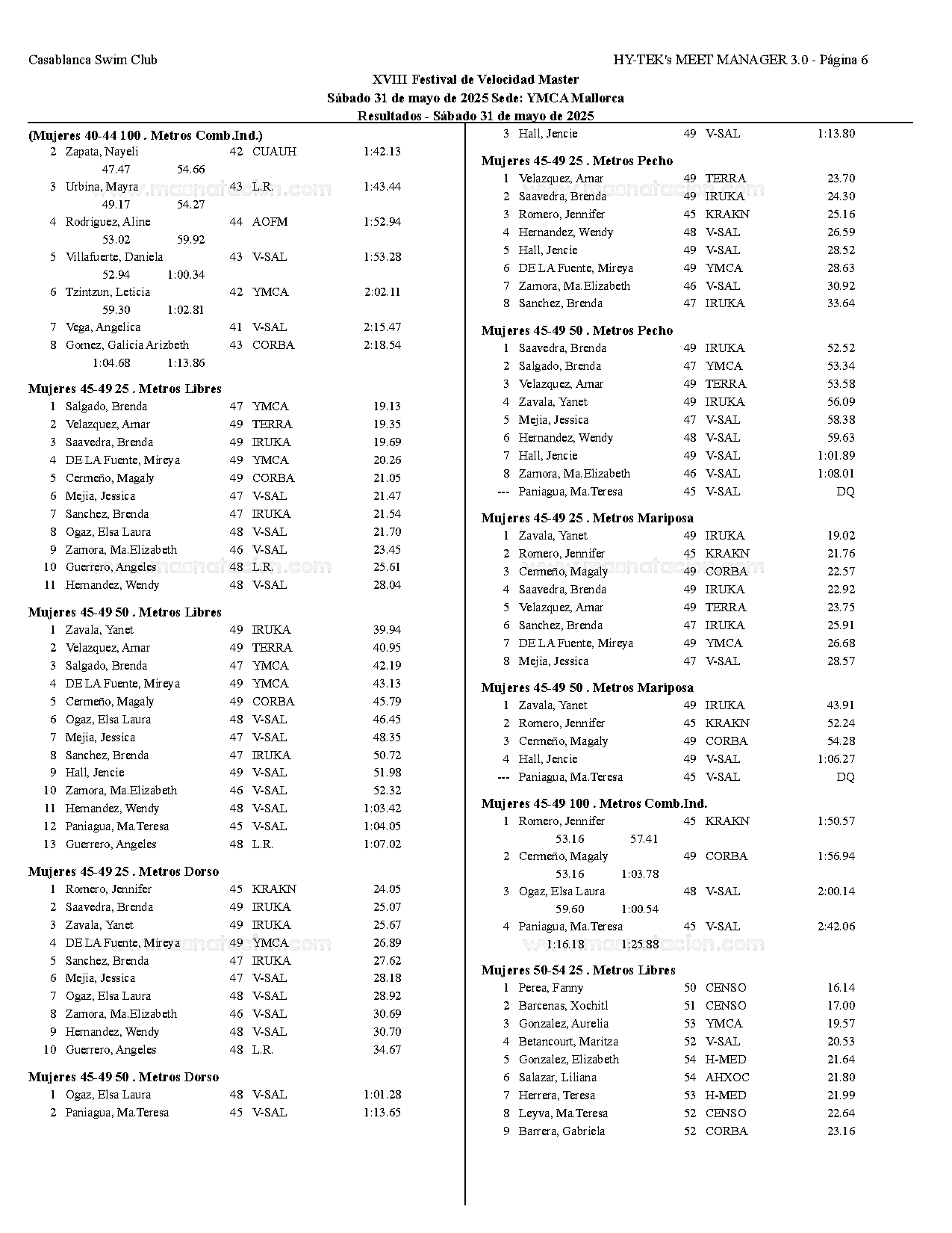 XVIII Festival de Velocidad de Natacion Master 2025