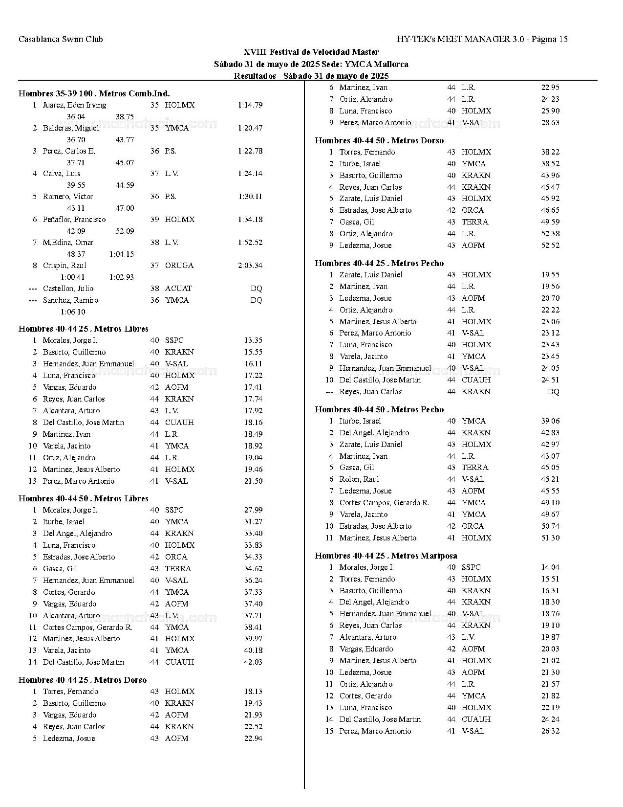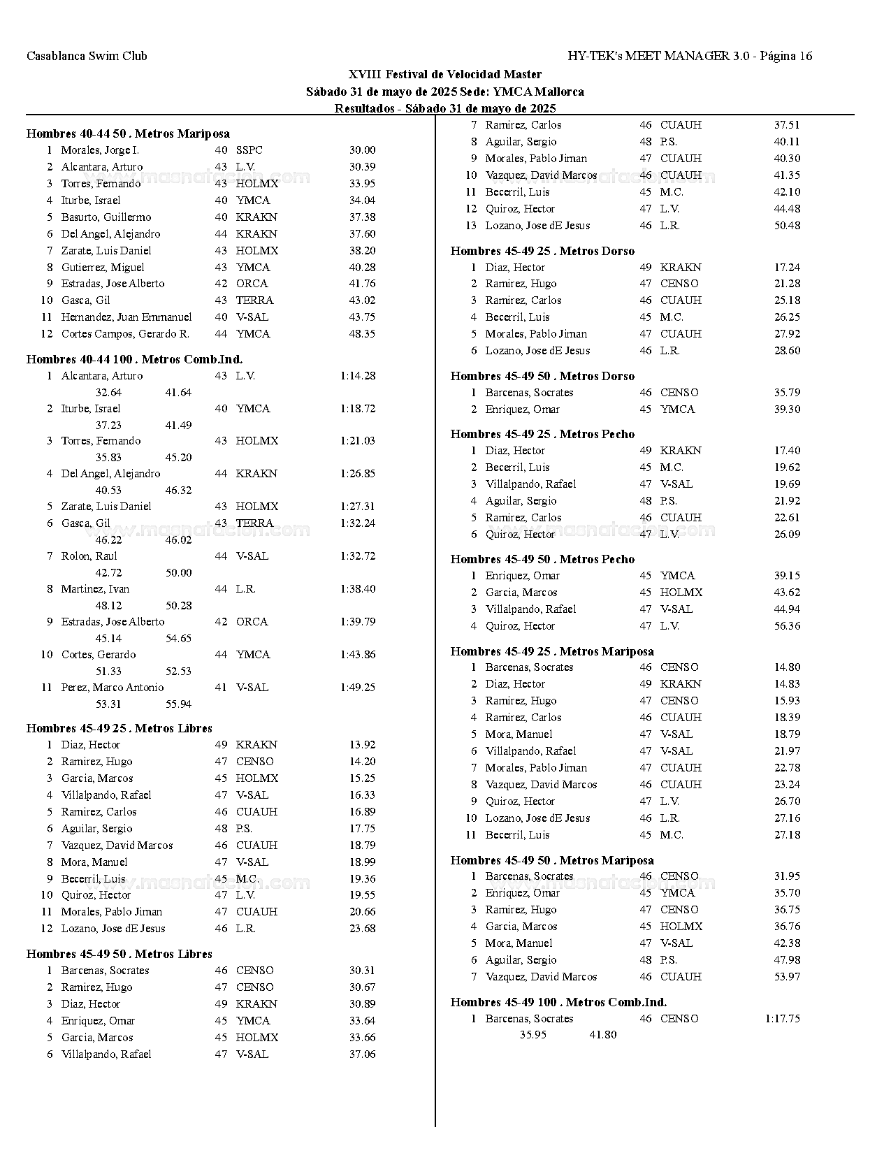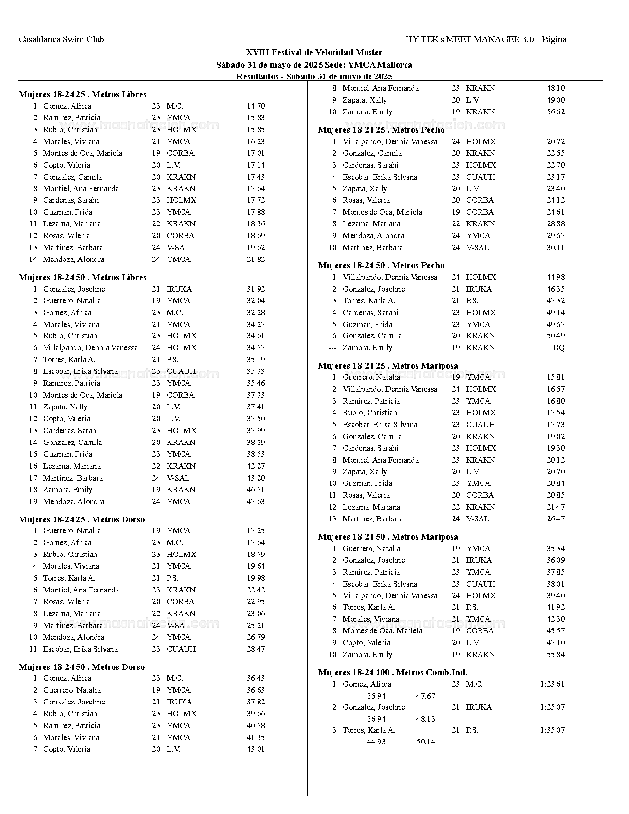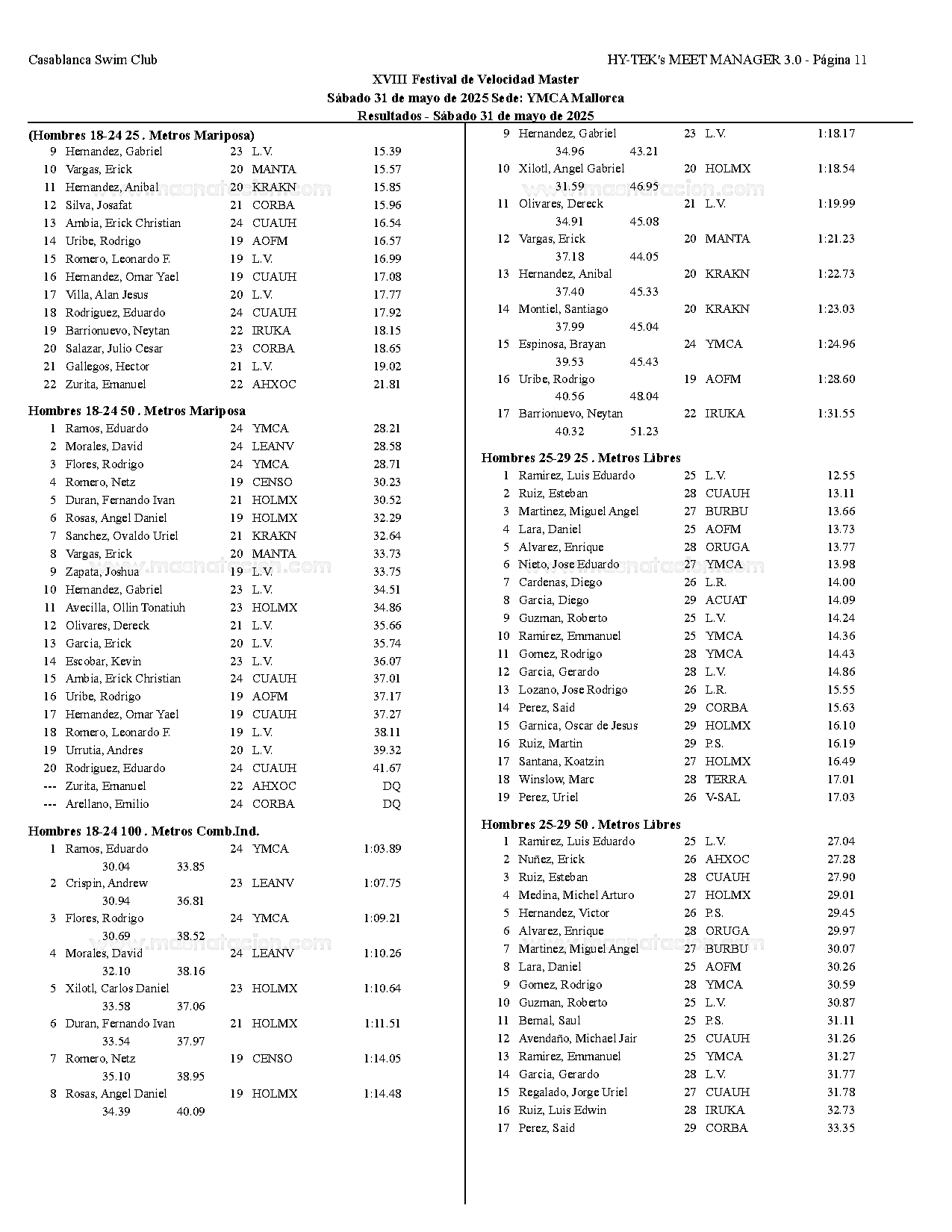 XVIII Festival de Velocidad de Natacion Master 2025