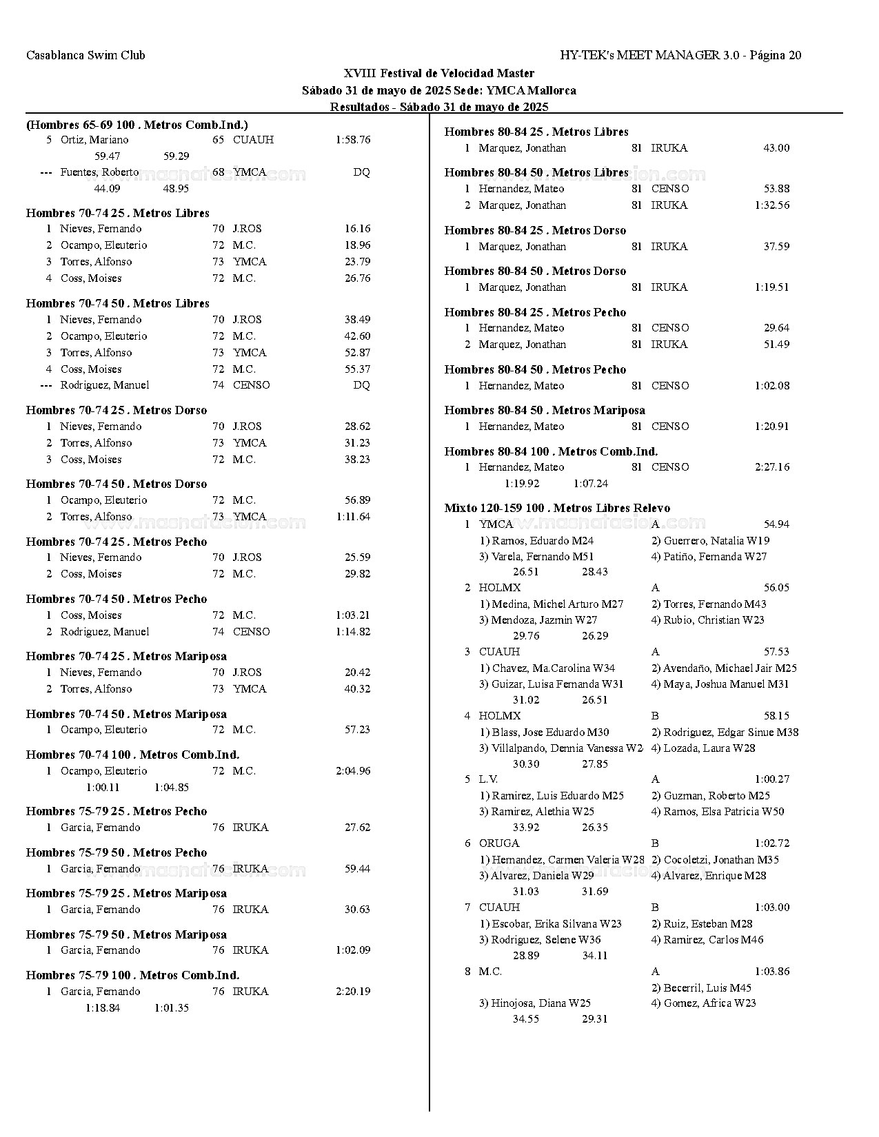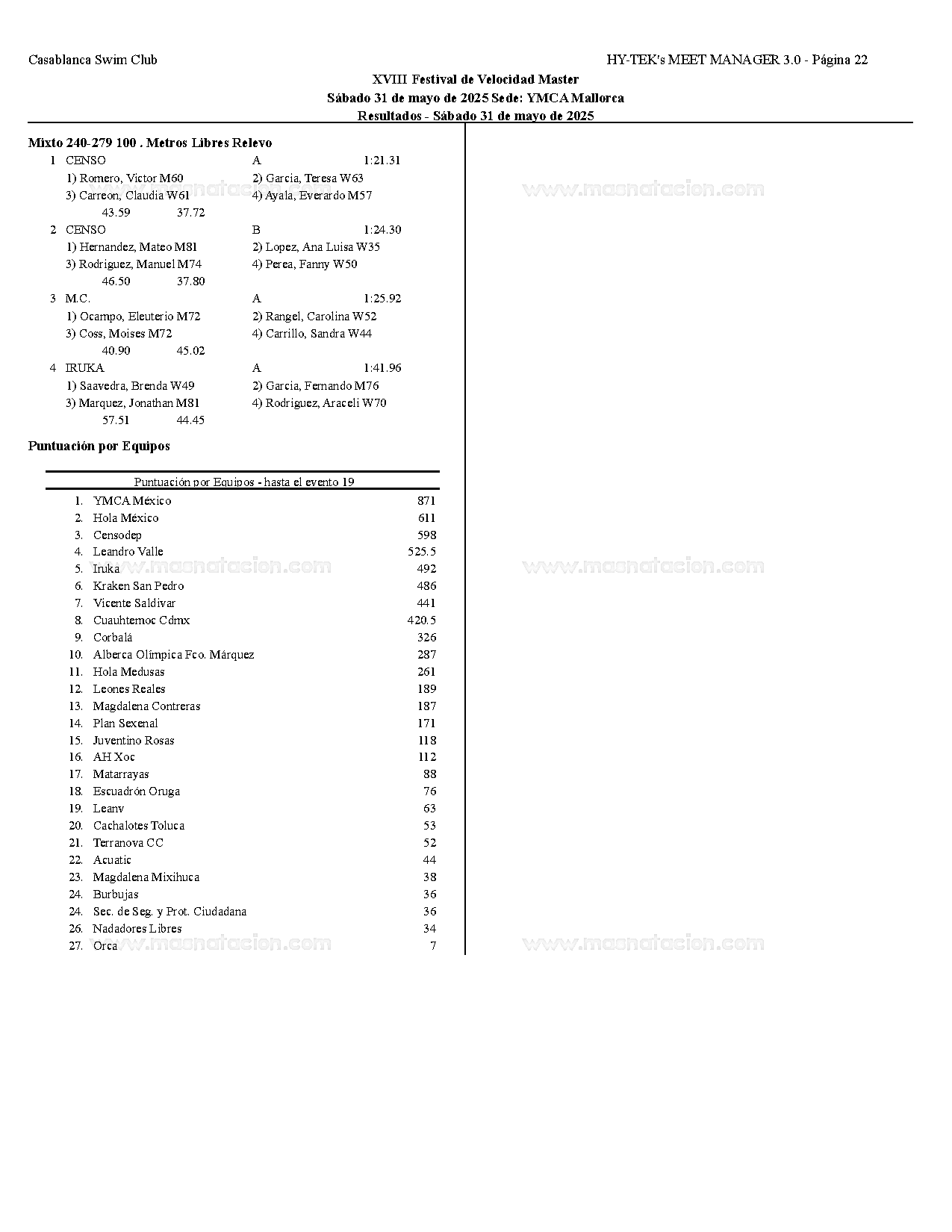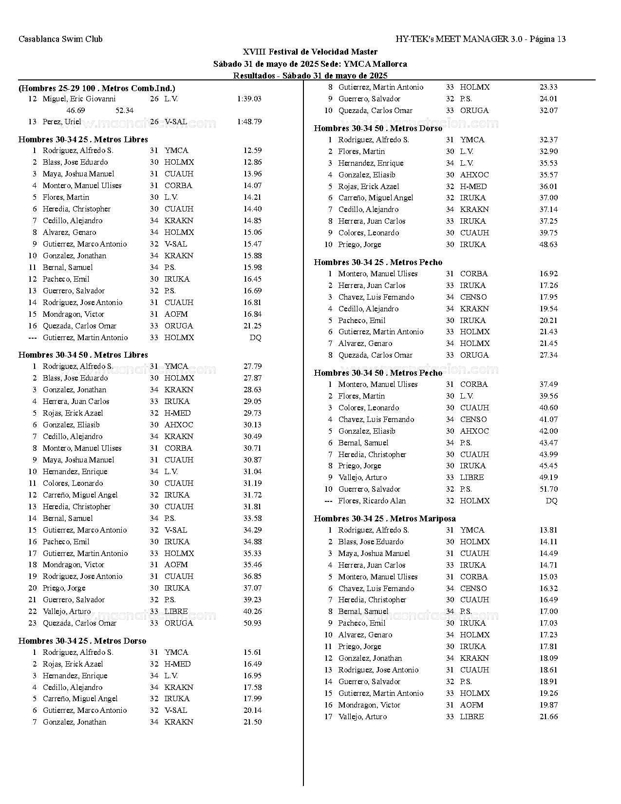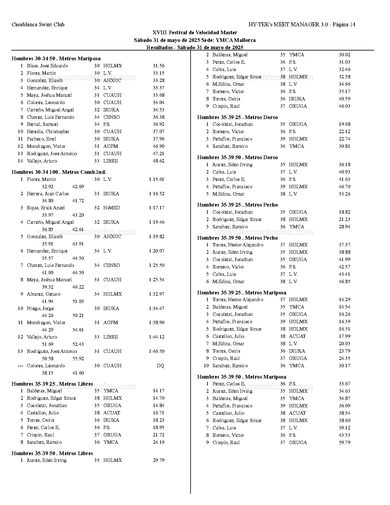 XVIII Festival de Velocidad de Natacion Master 2025